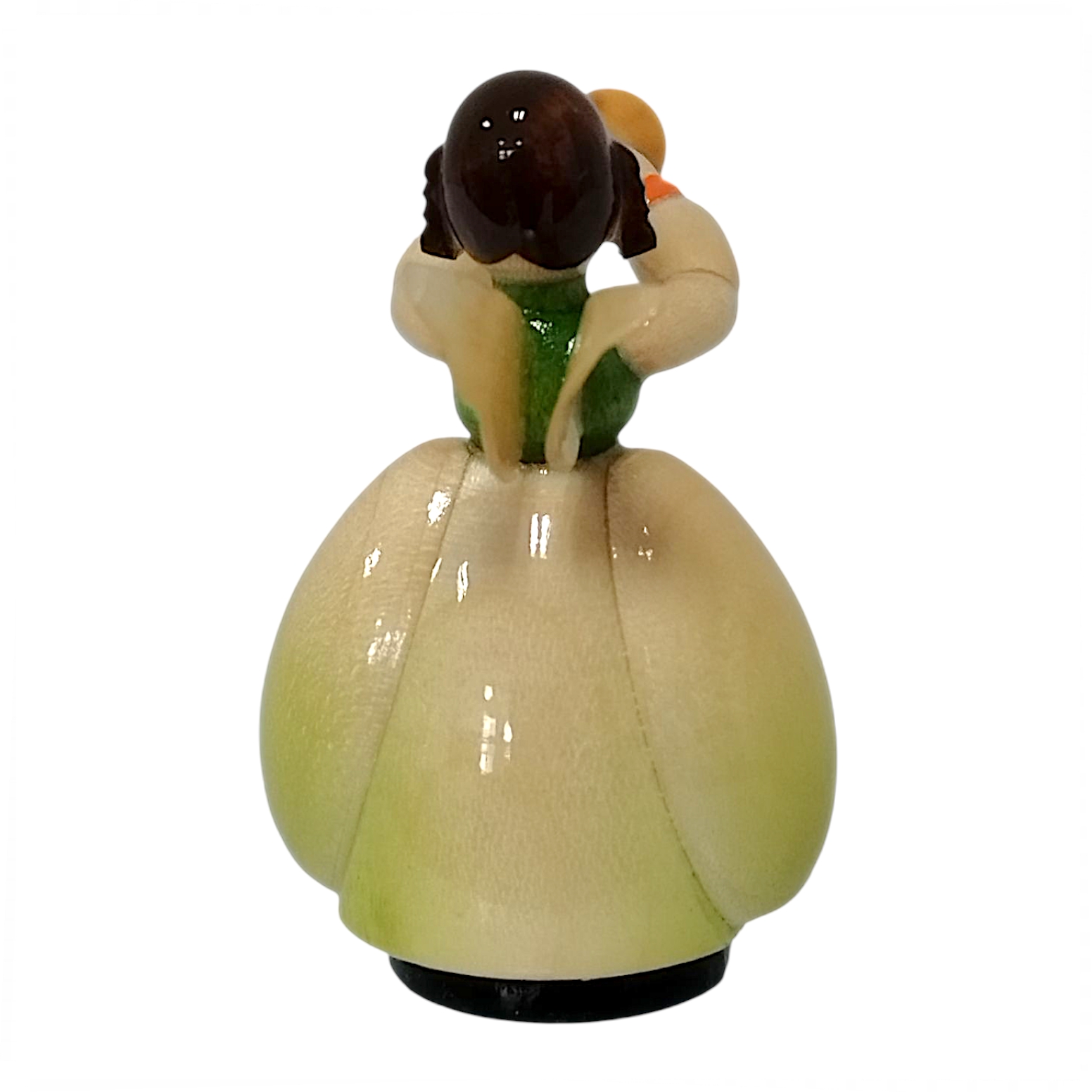 The little angel’s friendly face radiates pure enthusiasm for music. Two dot-like eyes and a small red mouth lend him a childlike, naive, yet refined charm. His deep black hair lies close to his head and ends in two neat braids at the sides. These loving details make each angel a truly unique piece. The design consistently follows the spirit of the Biedermeier period and emphasizes a peaceful idyll.