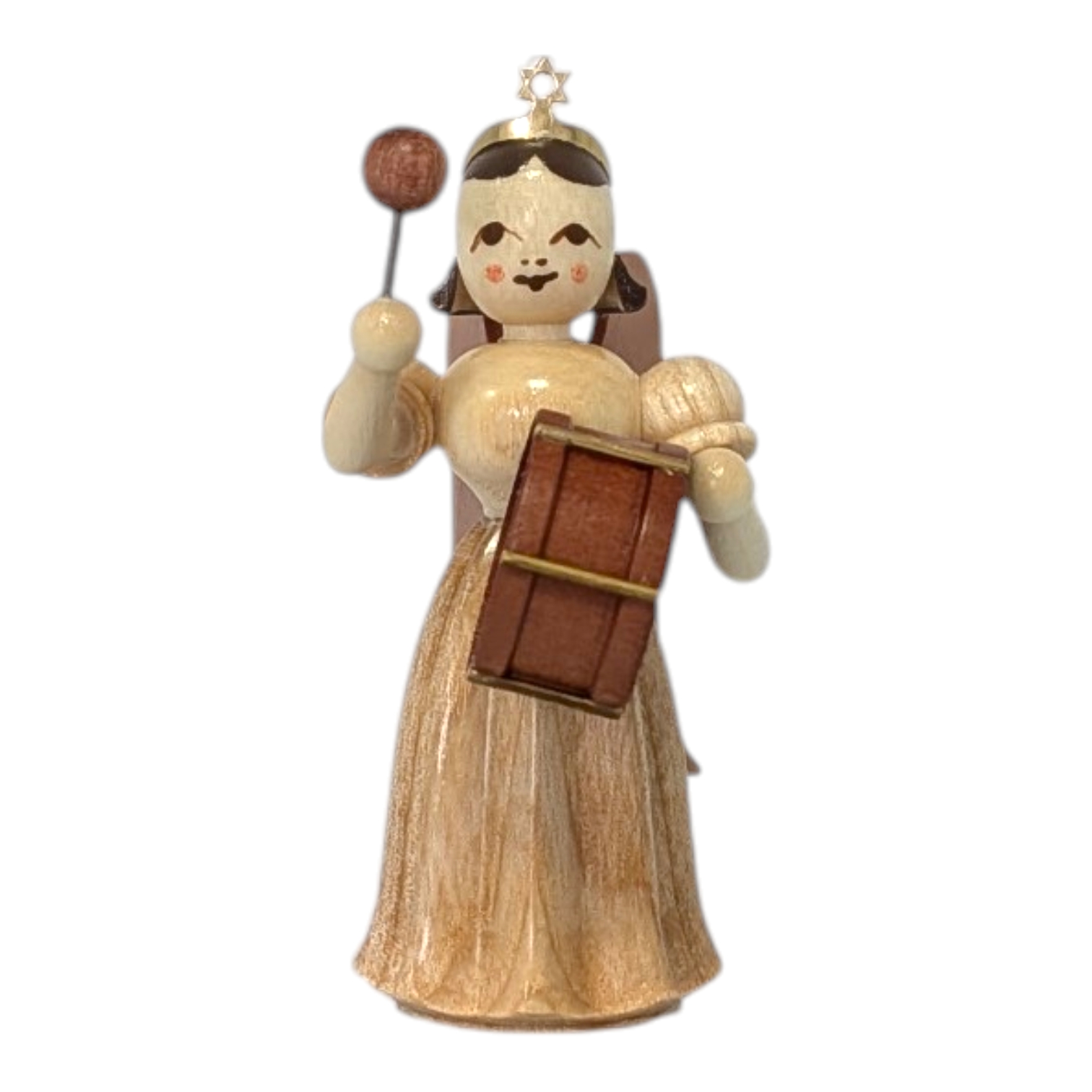 The manufacturing process is particularly impressive: the Blank long-skirted angel with a timpani is crafted from various fine, locally sourced woods. The figure is assembled with the utmost care in approximately 135 precise steps, perfectly showcasing the natural grain of the wood. The result is a small work of art that brings joy not only at Christmas time, but all year round.