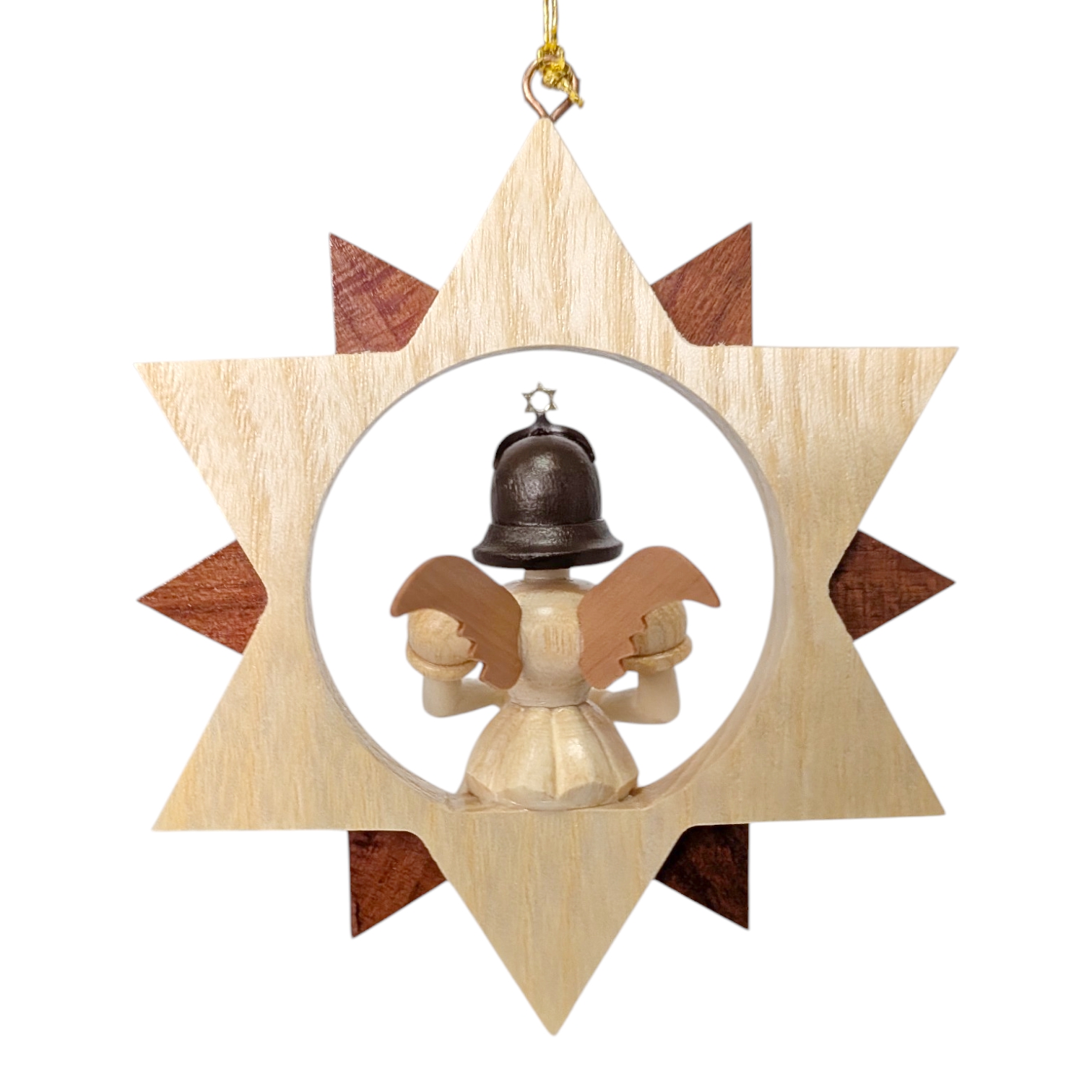 The short-skirted angel in a star with a saxophone is crafted with meticulous attention to detail, giving it a natural and charming character. This lovely angel has made itself comfortable in a two-tone star and brings a smile to the faces of young and old alike.