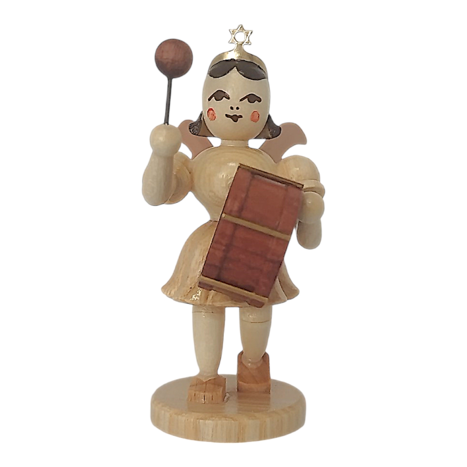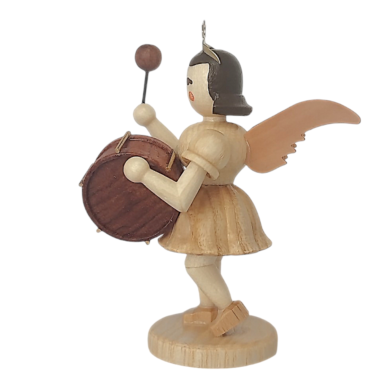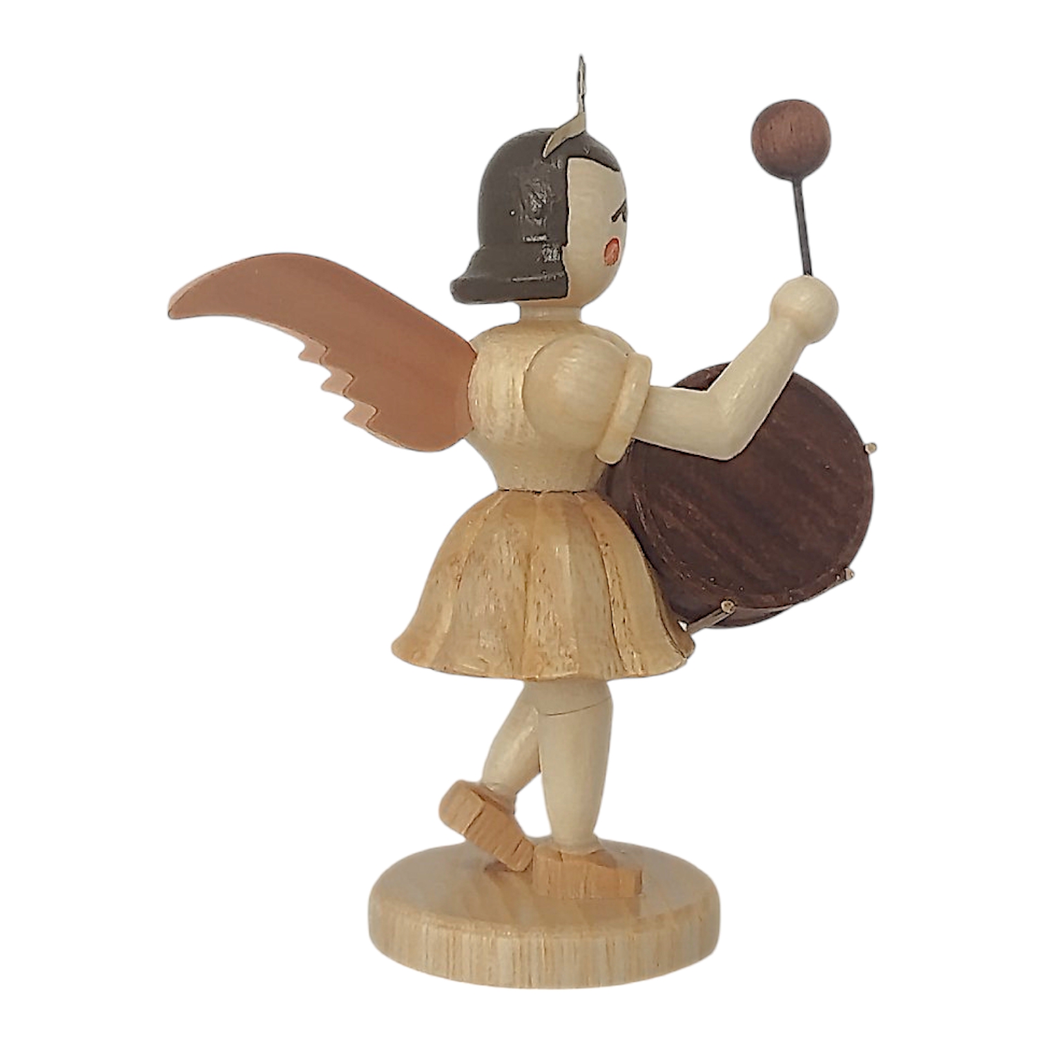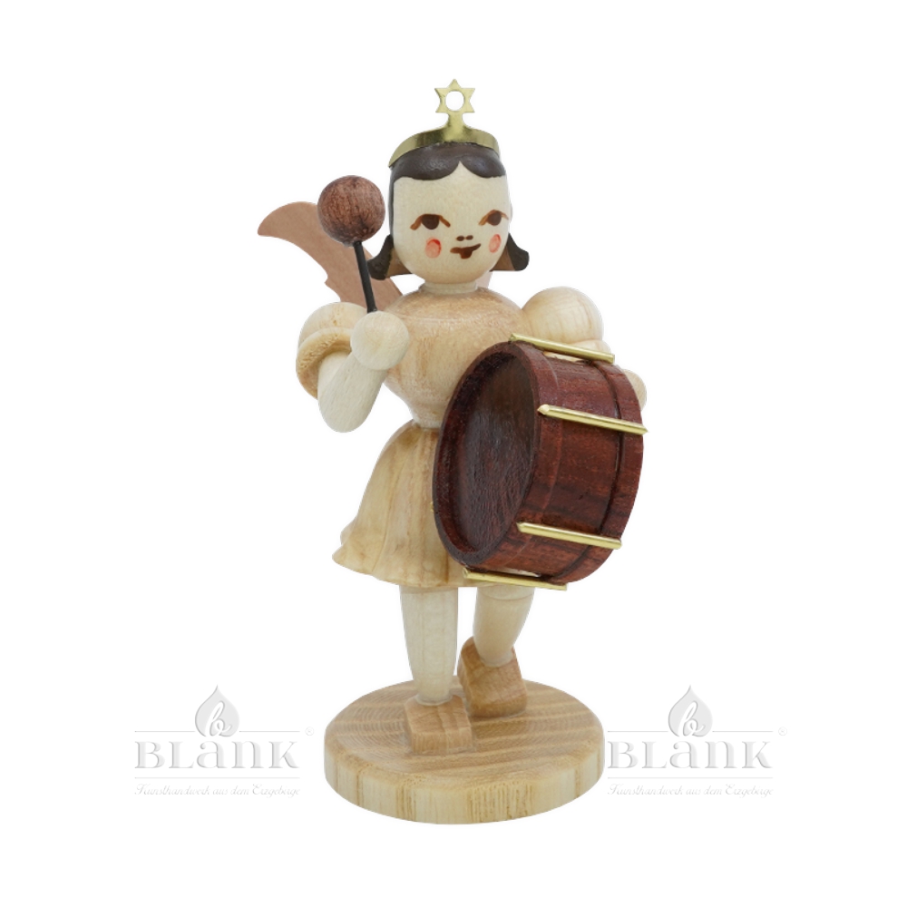 The manufacturing process is particularly impressive: the short-skirted angel with a timpani is crafted from various fine, locally sourced woods. The figure is assembled with the utmost care in approximately 135 precise steps, perfectly showcasing the natural grain of the wood. The result is a small work of art that brings joy not only at Christmas time, but all year round.