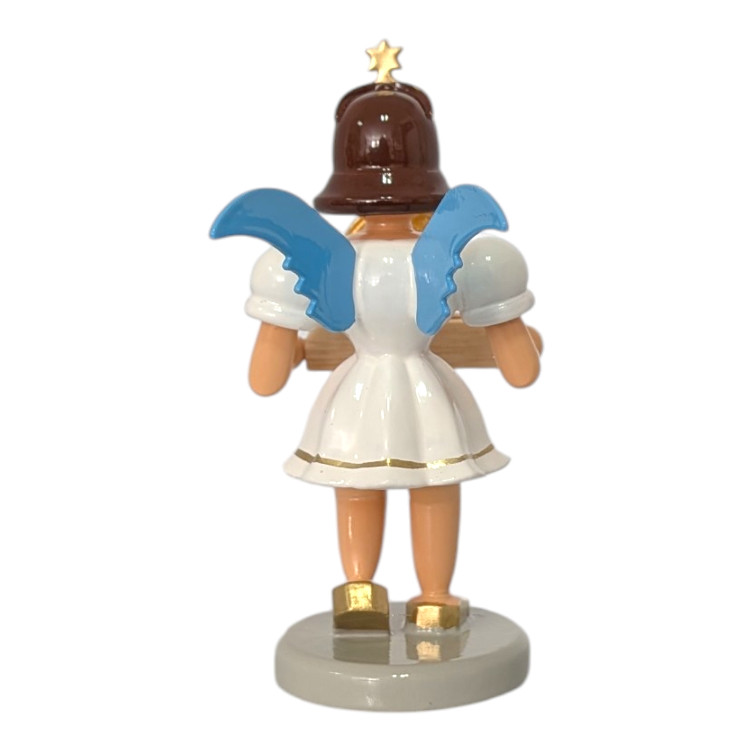 In this colorful version, the manufactory employs an exquisite paintwork technique that perfectly highlights the festive radiance of the little angel figurine. A friendly face with rosy cheeks gazes out from beneath a golden crown adorned with its characteristic star. The delicate, blue-glazed wings form a gentle color contrast to the pure white dress, lending the figure its unmistakable lightness.