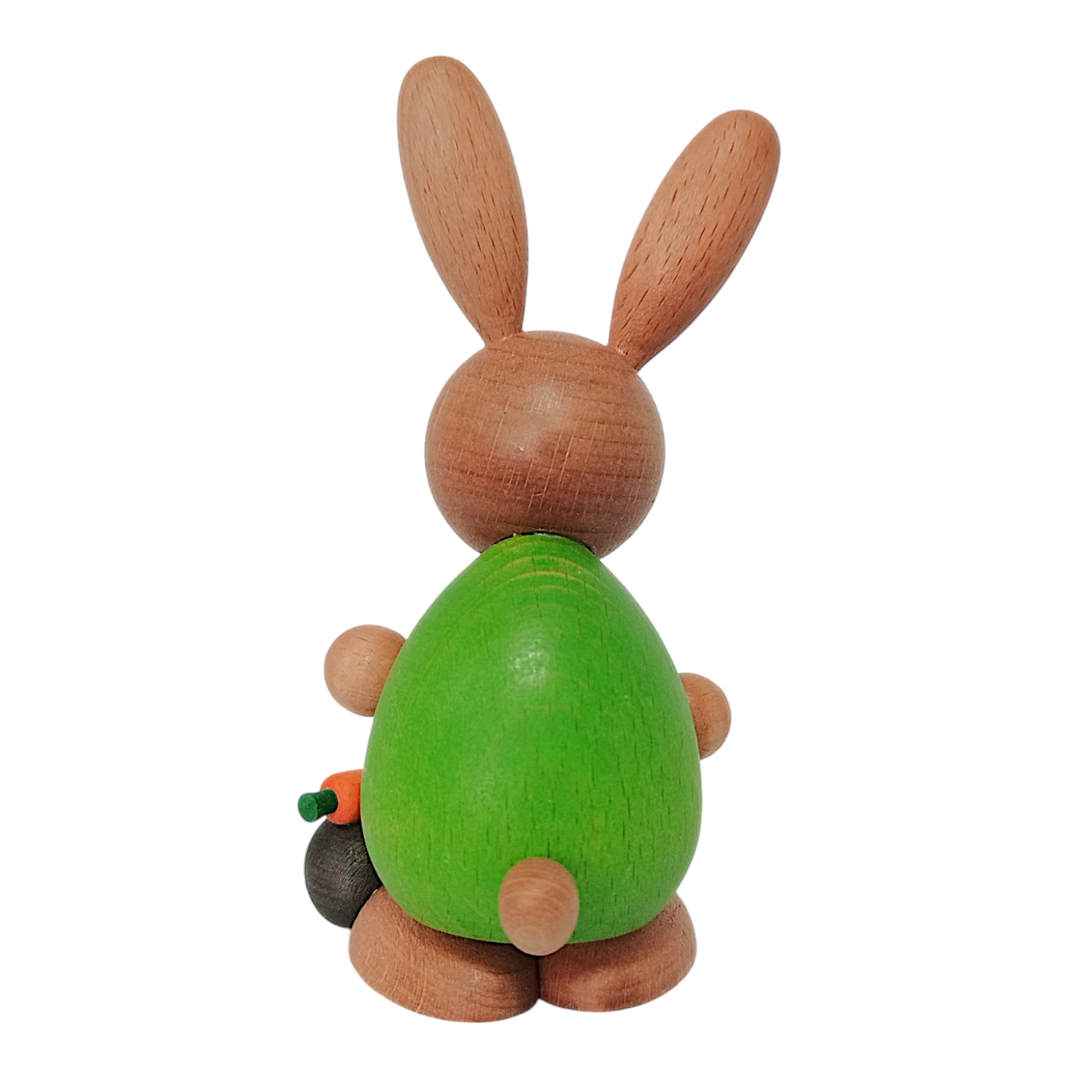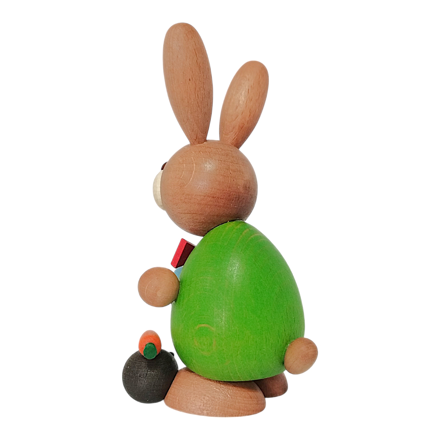 A special highlight is the small scene at its feet: there, a cute little hedgehog with dark spines rests on its back, carrying a bright orange carrot with a green top. The figure captivates with its harmonious, rounded forms and is a wonderful example of detailed craftsmanship that combines traditional elements with colorful design.