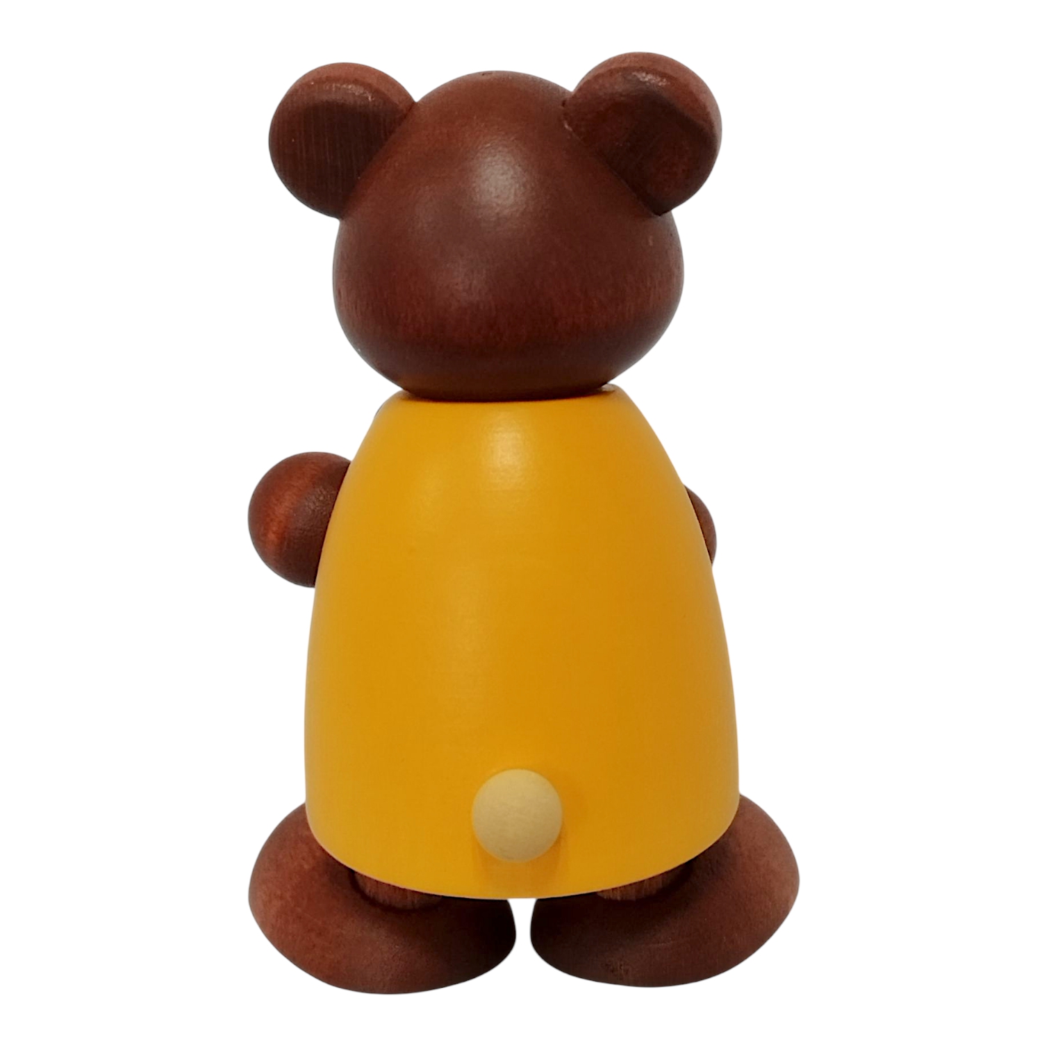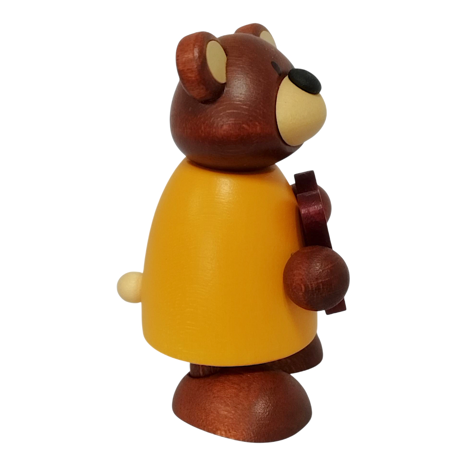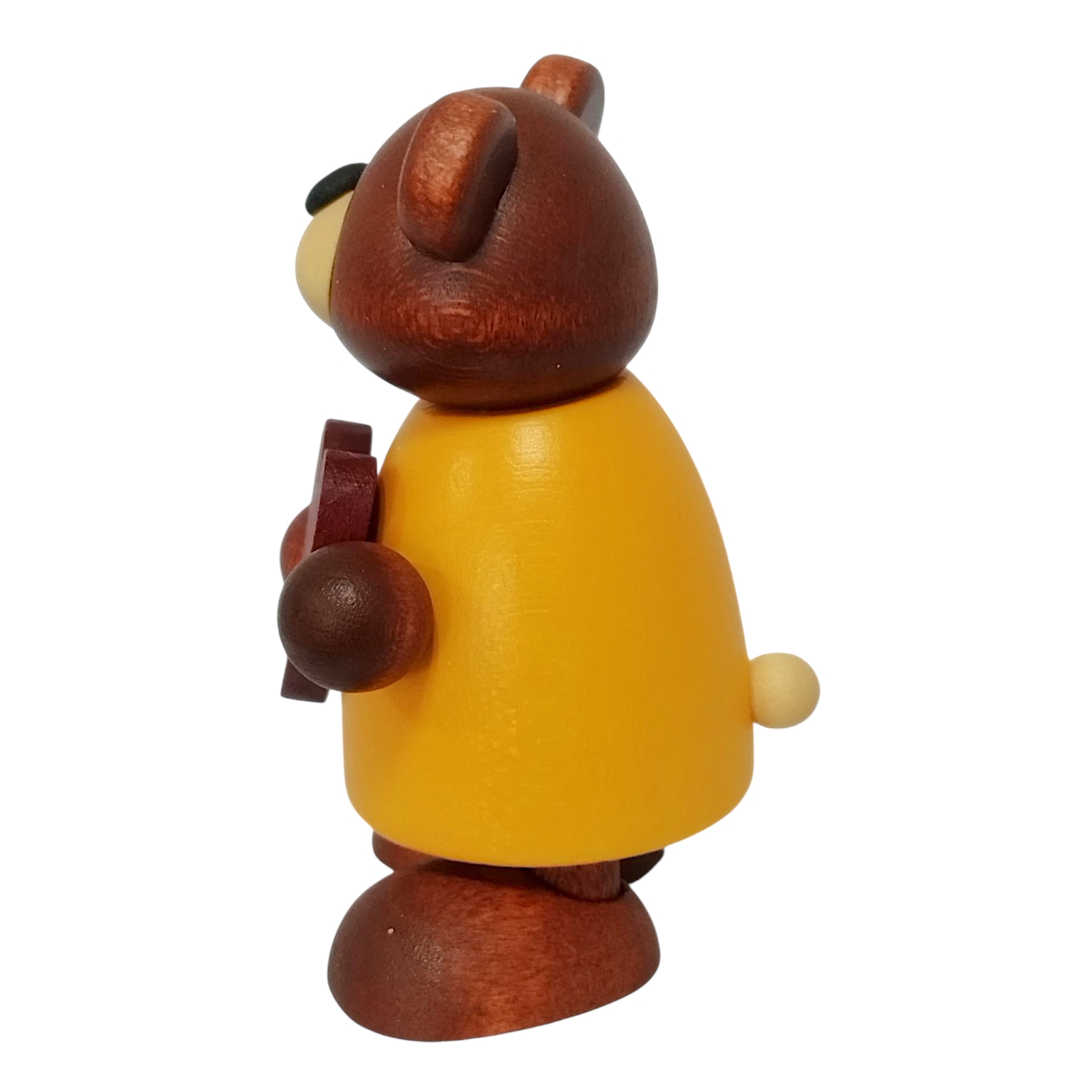 Bärbel impresses with her meticulous craftsmanship from select maple and birch wood, which takes on its final shape in many steps. The warm brown tones of the wood harmonize perfectly with the vibrant yellow color of her clothing, creating a charming contrast. Each figurine is traditionally handcrafted in the Ore Mountains, ensuring each piece is unique. The subtle silver heart on the base is the unmistakable trademark and makes Bärbel a true “figurine with a heart.”