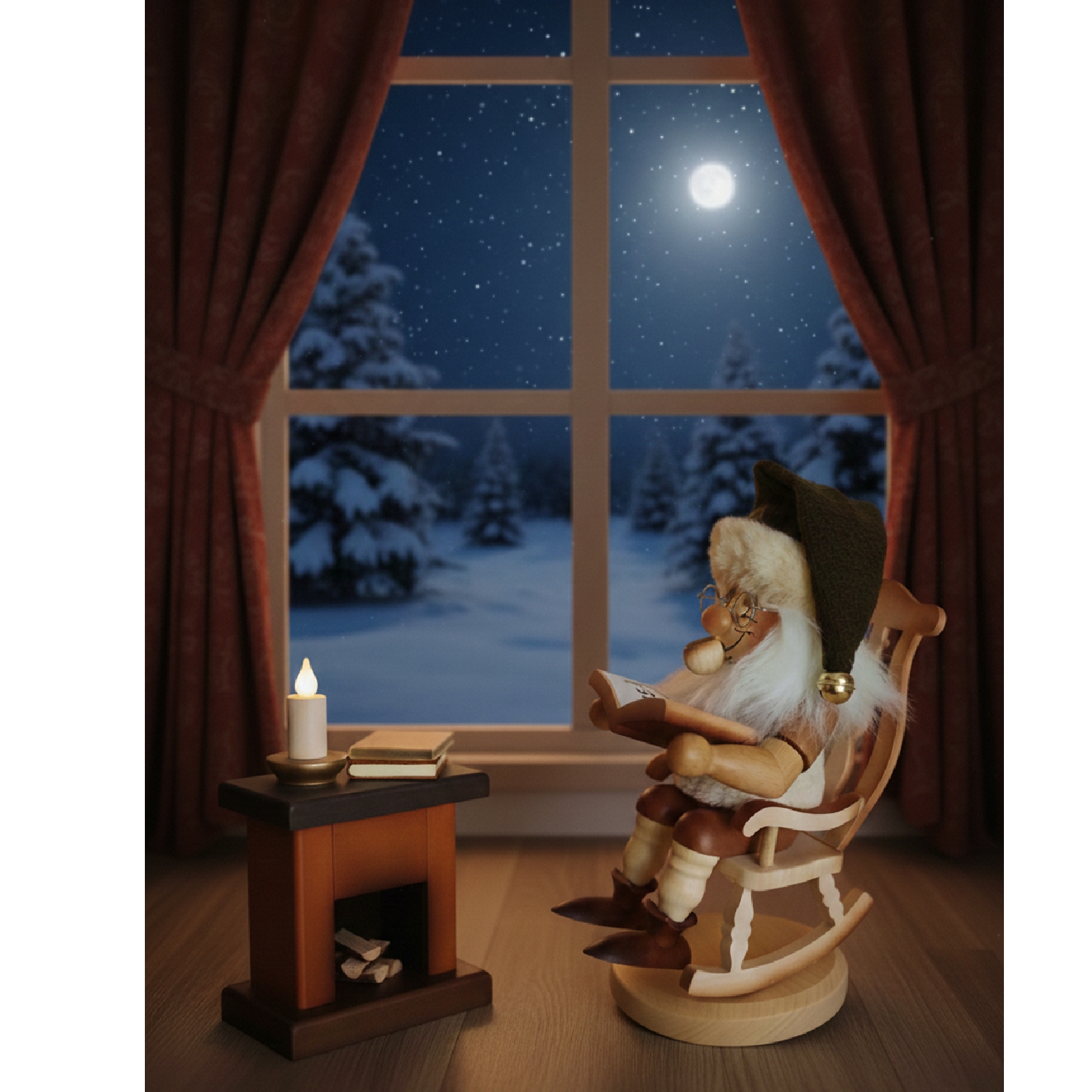 This charming fireplace from Christian Ulbricht embodies true Erzgebirge craftsmanship. Ulbricht produces this fireplace as the perfect complement to their popular gnome in a rocking chair. Lovingly handcrafted in the idyllic spa town of Seiffen, each piece is made from local woods such as maple, beech, alder, and spruce, making it a unique work of art.