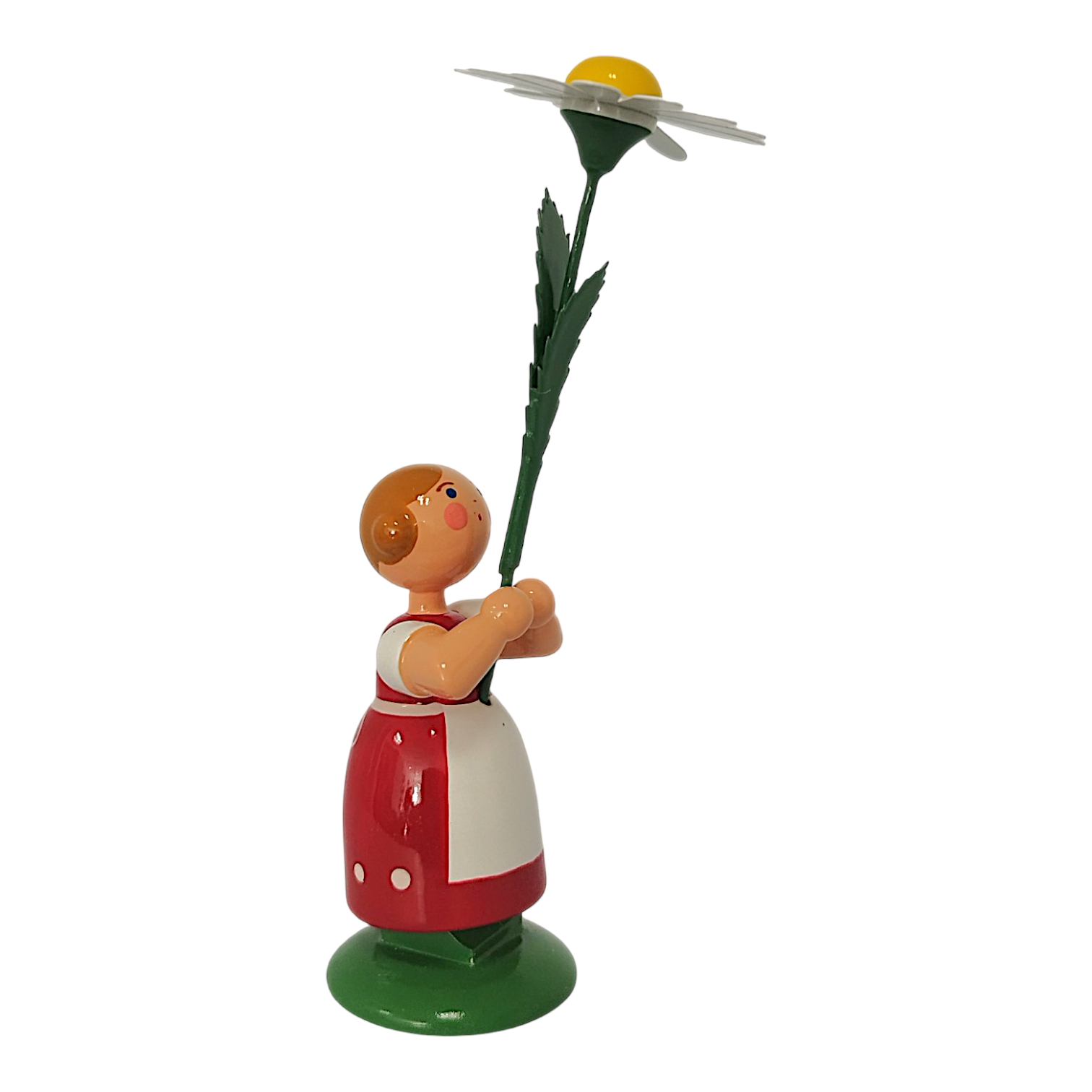 This enchanting flower girl with a daisy also comes from the workshop of Jan Legler, a wood and woodturning specialist. Each figure is crafted with the utmost care and traditional techniques in the Ore Mountains, making every piece a unique work of art with impressive detail.