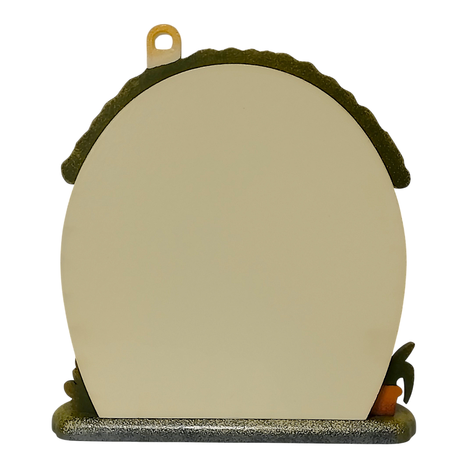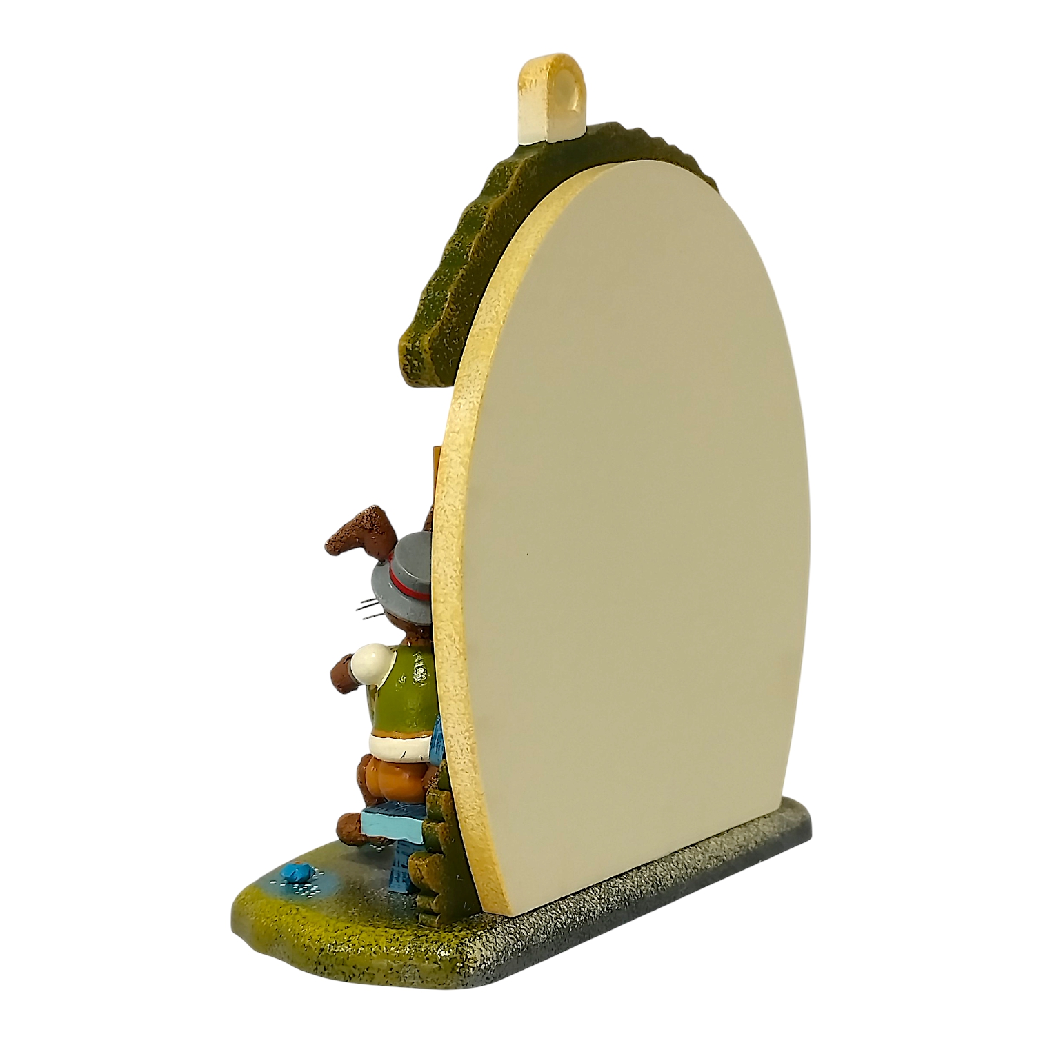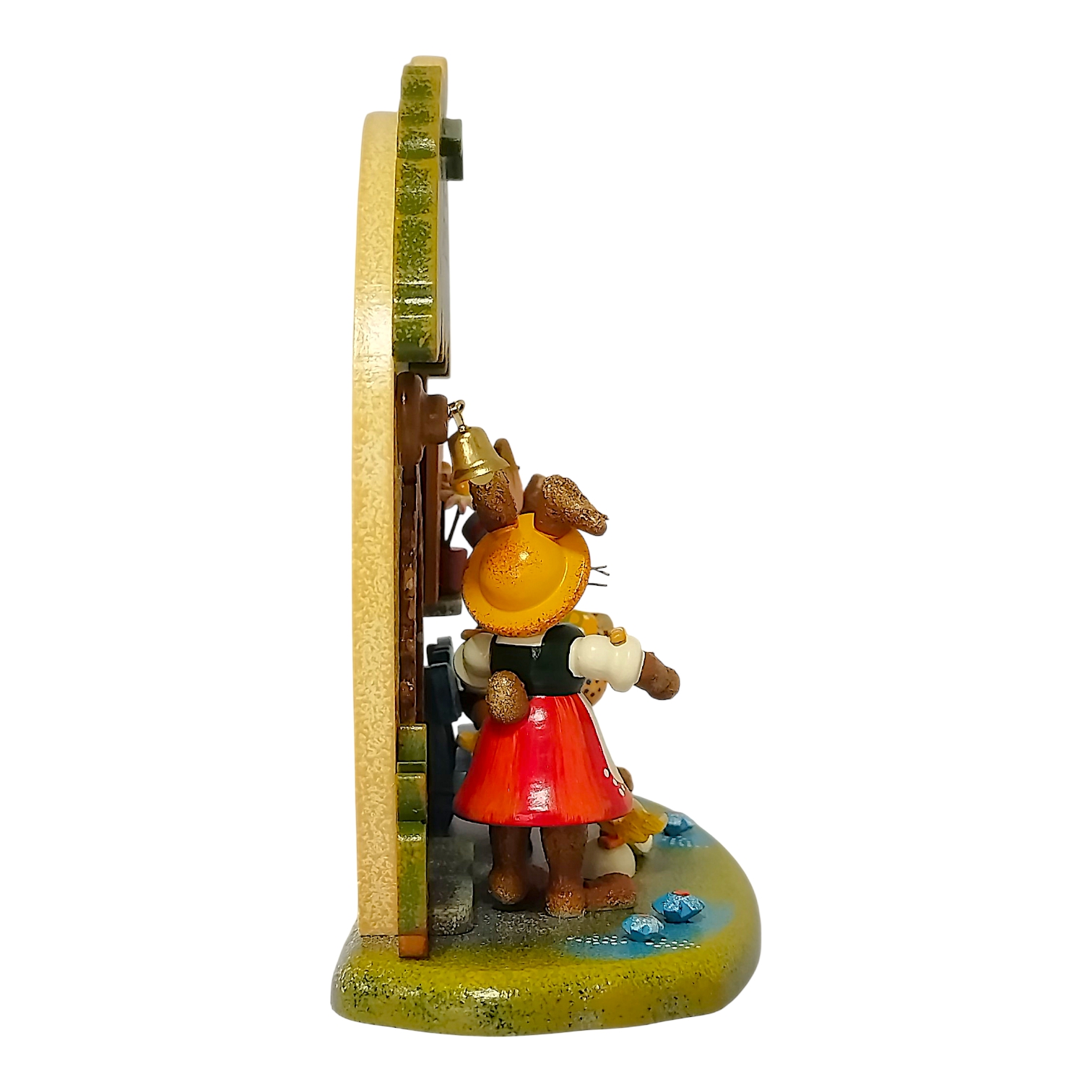 This enchanting Hubrig collectible figurine of bunny house transports you to a fairytale world full of charm and loving details. The hand-painted wooden house features a green roof reminiscent of reeds, giving it a rustic character. A cream-colored chimney rises cozily, while a small window with a flower box in the attic invites you to linger.