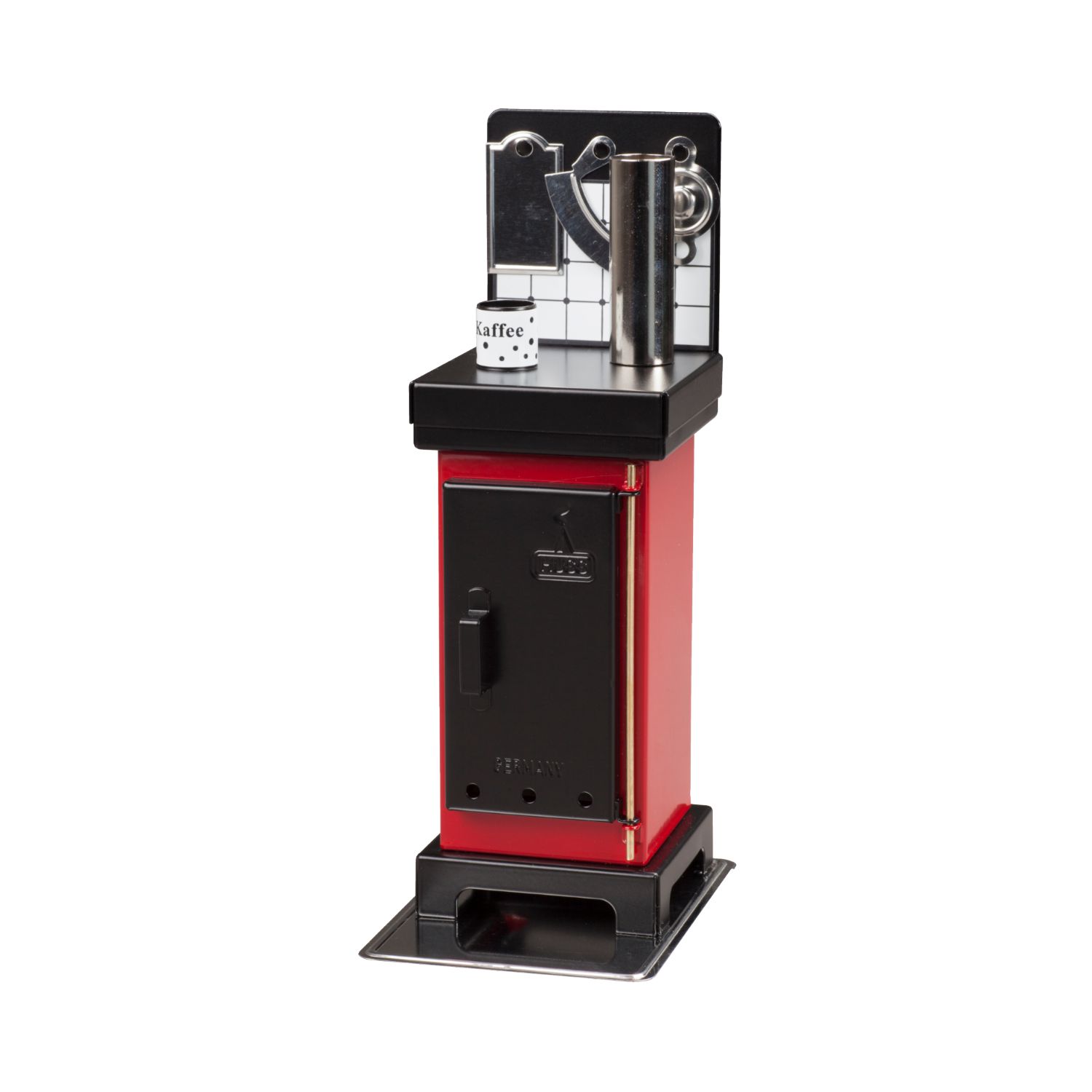 With great attention to detail made, a HUSS Incense candles oven “The classic” red/black as a small kitchen stove for the use of incense with small pieces of cutlery created for hanging on the back wall flow.