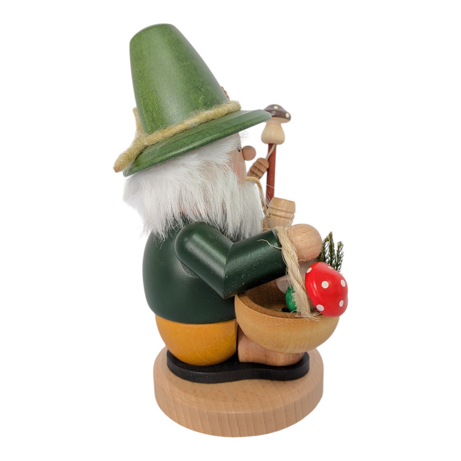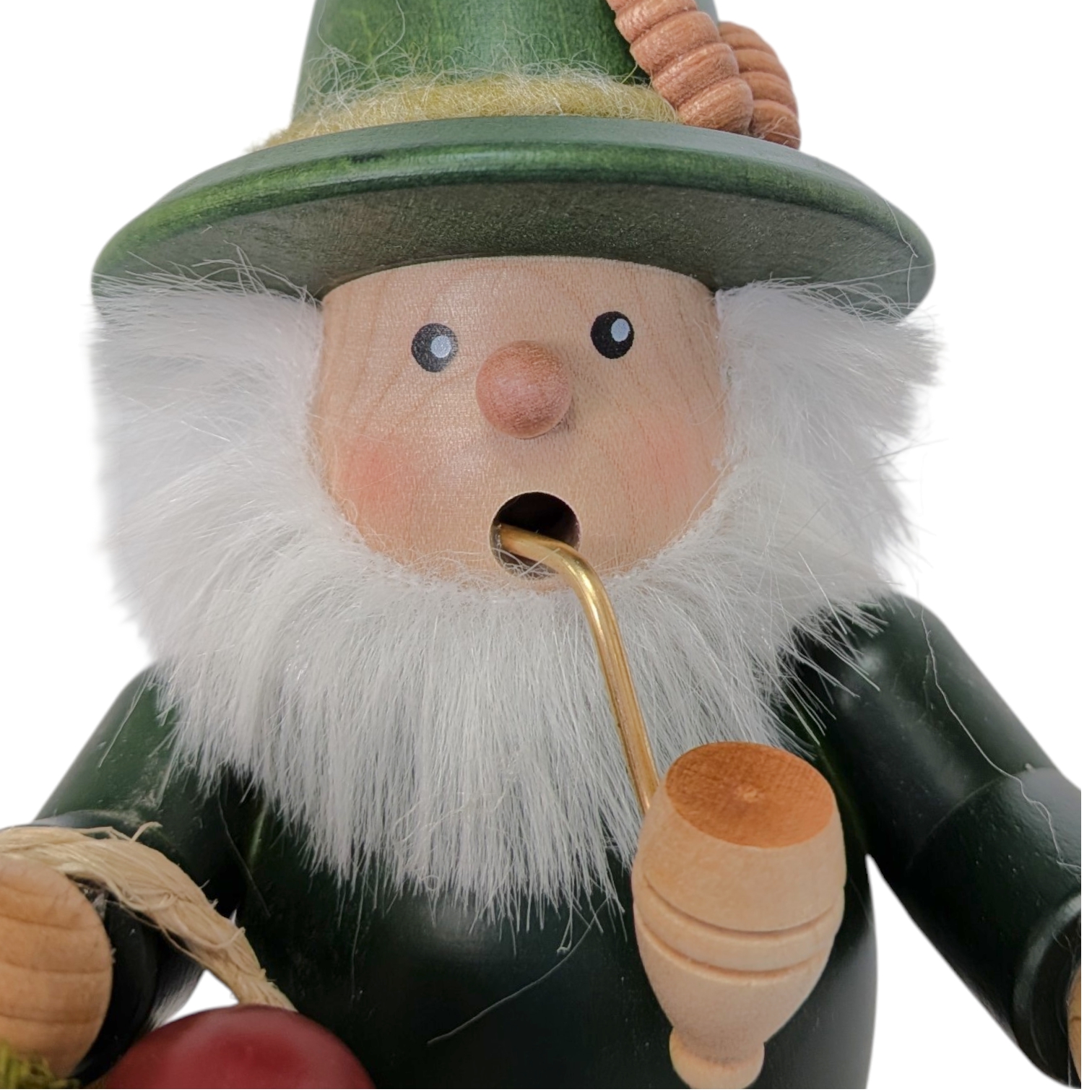 This charming incense smoker, a woodland gnome, comes from the Christian Ulbricht workshop and is a prime example of Erzgebirge craftsmanship. Handcrafted with meticulous detail, it stands securely on a light, round base of natural wood, lending it a down-to-earth and nature-inspired charm.
