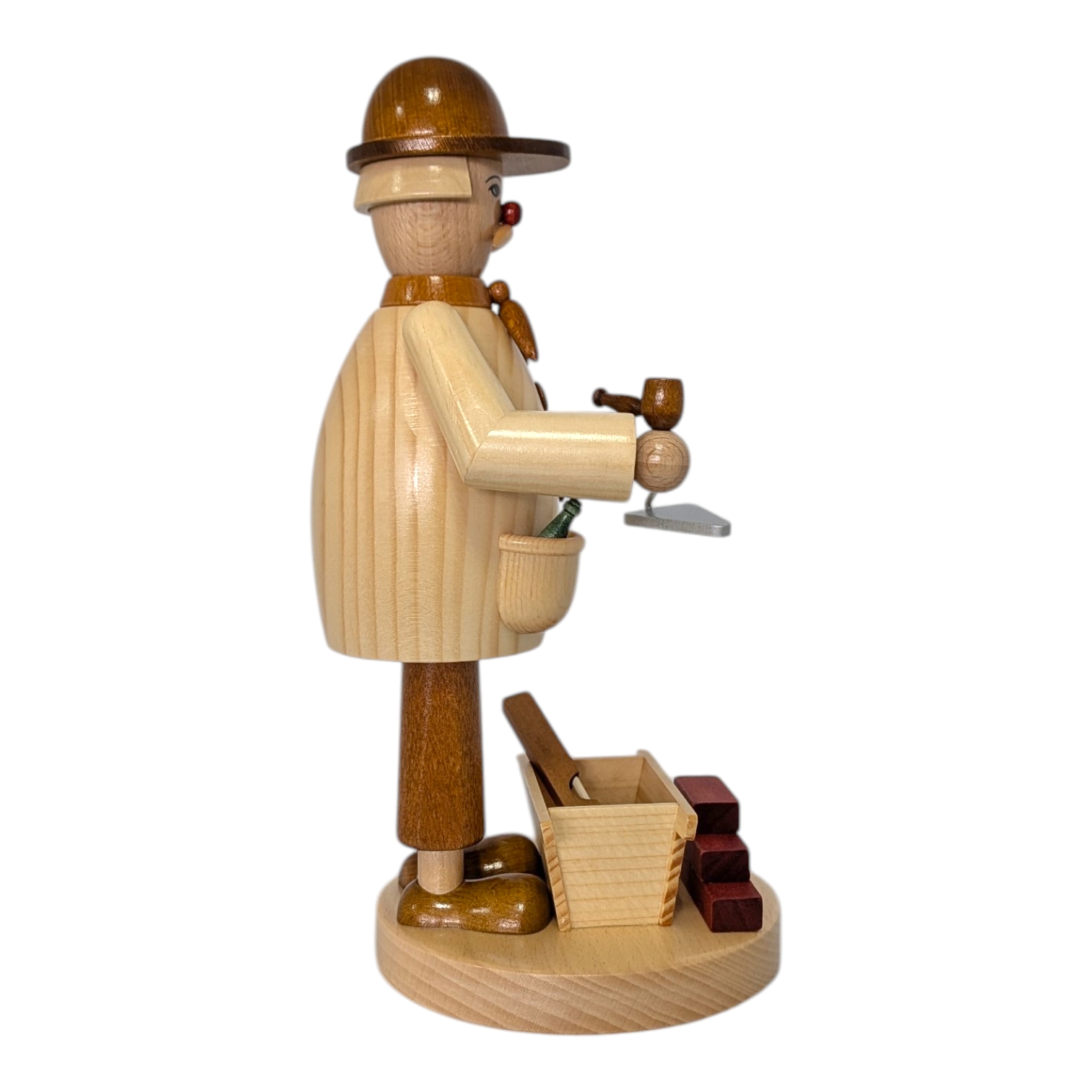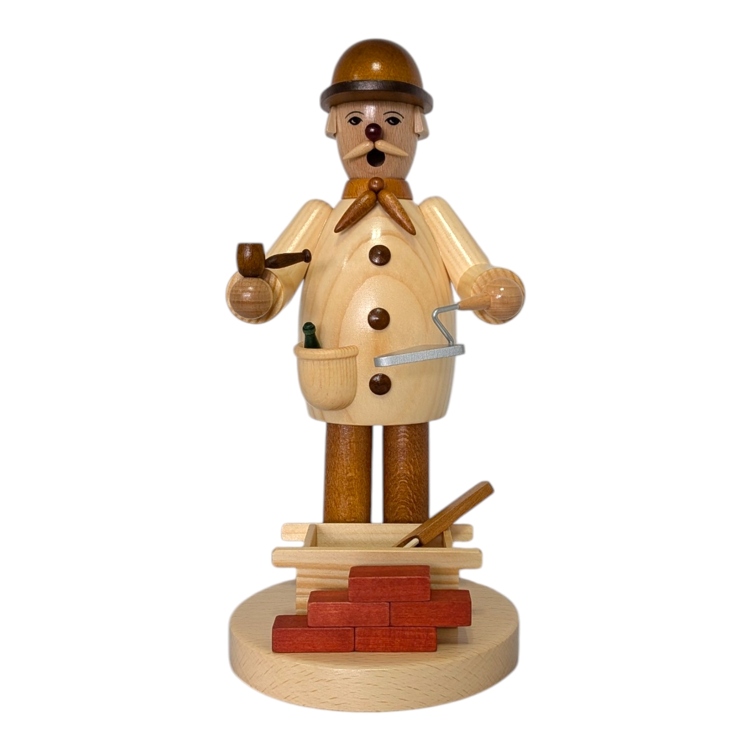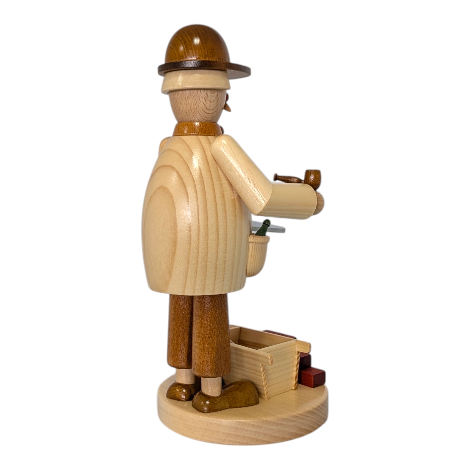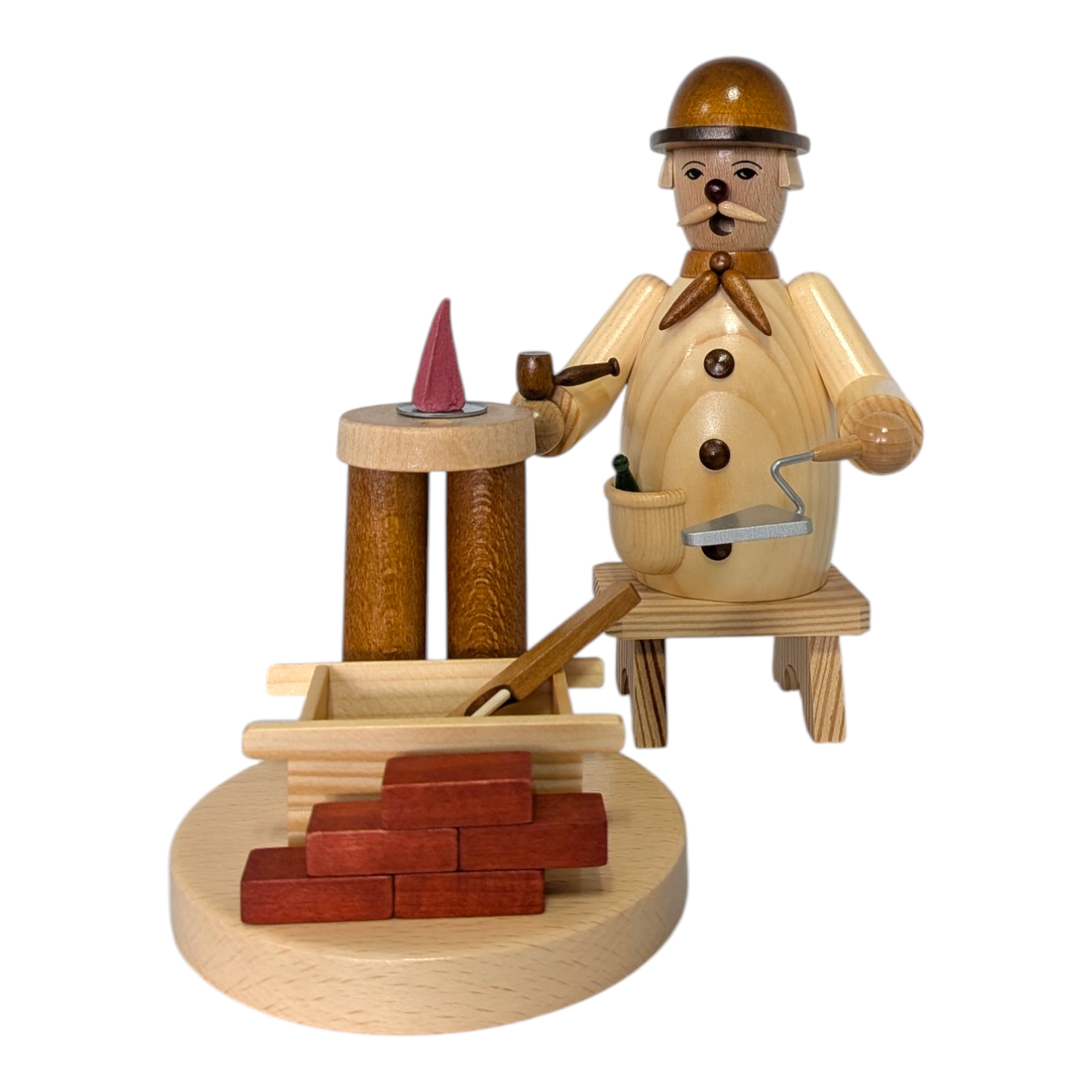 This bricklayer incense smoker, in natural wood, is lovingly handcrafted using traditional techniques by the Friedbert Uhlig woodturning workshop. Natural wood incense figures and miniatures with unusual motifs are the hallmark of the Uhlig company, based in Leubsdorf.