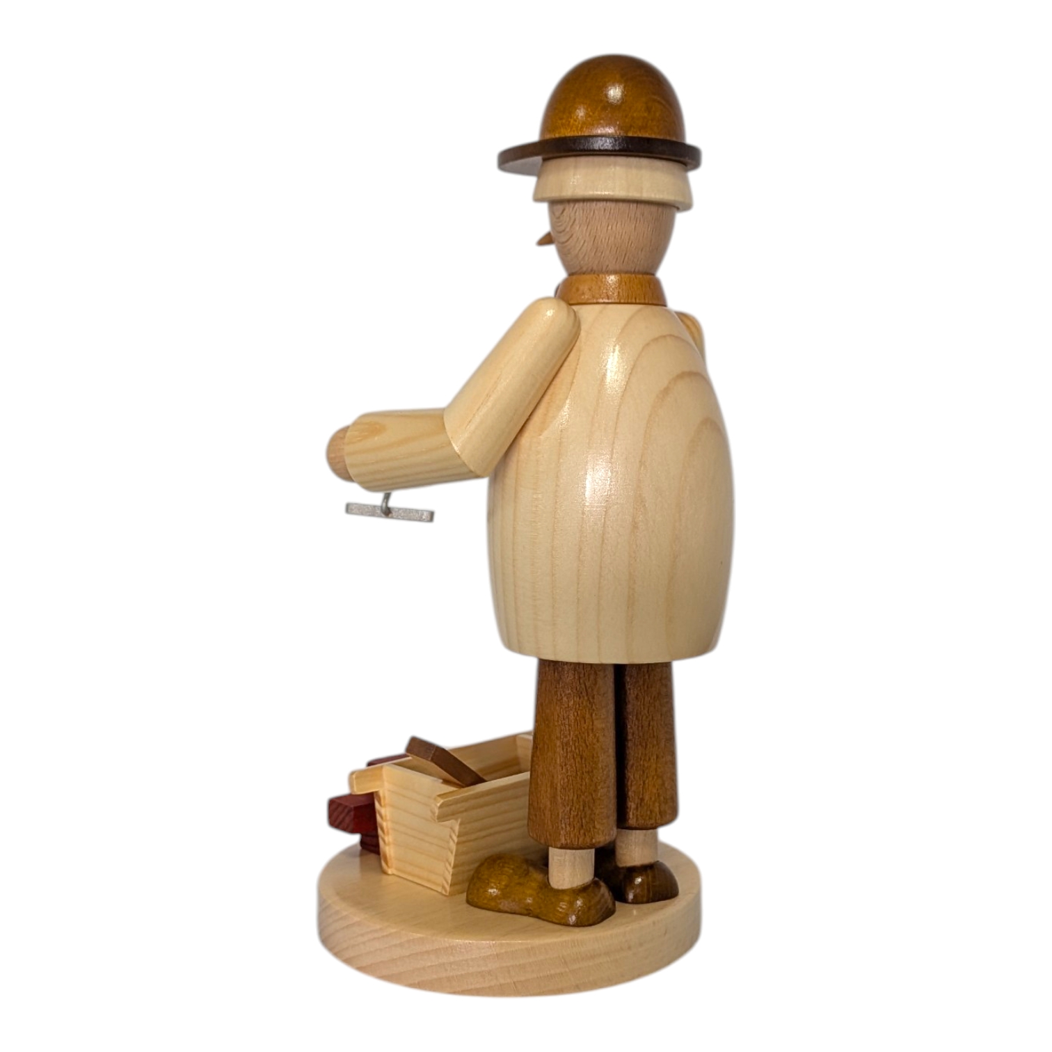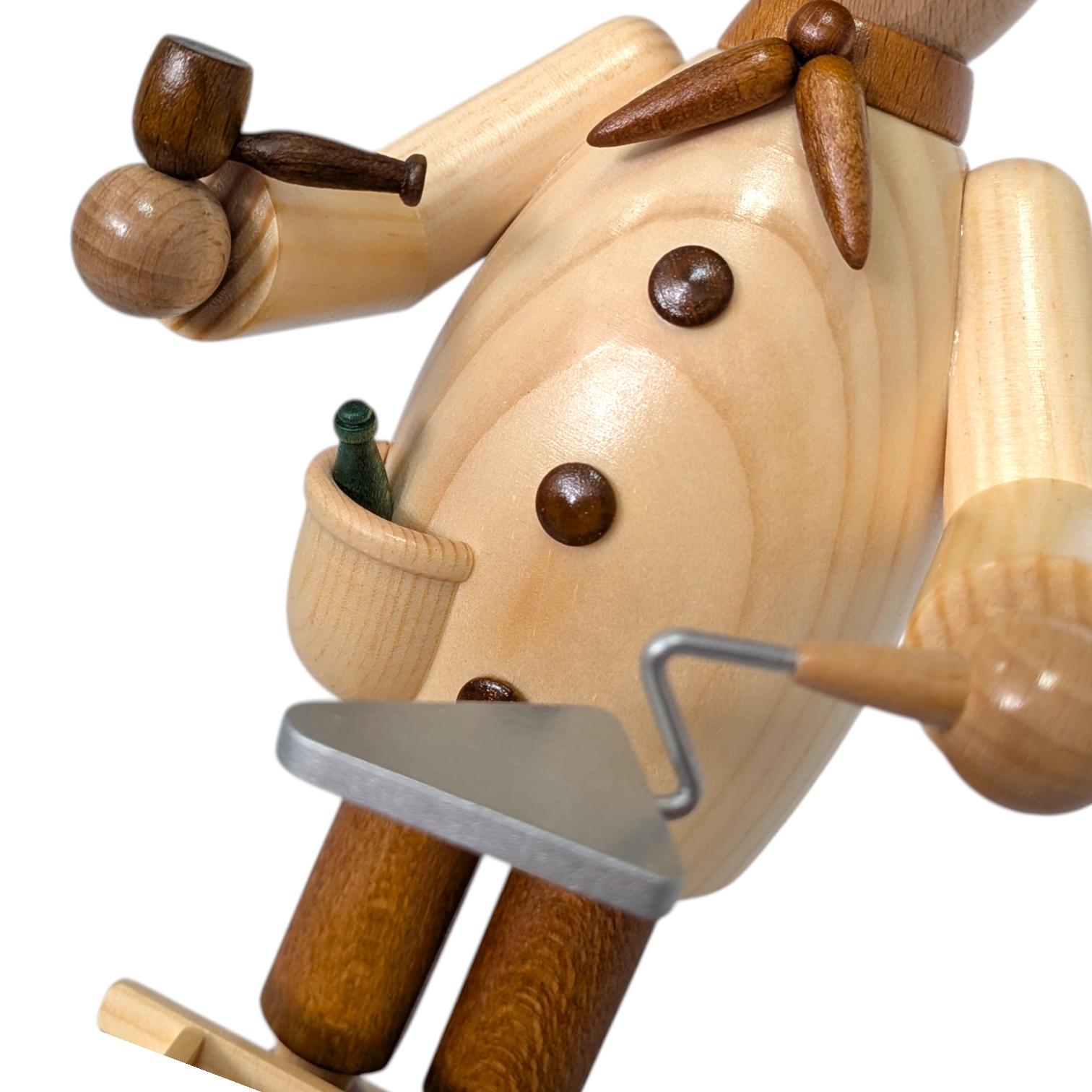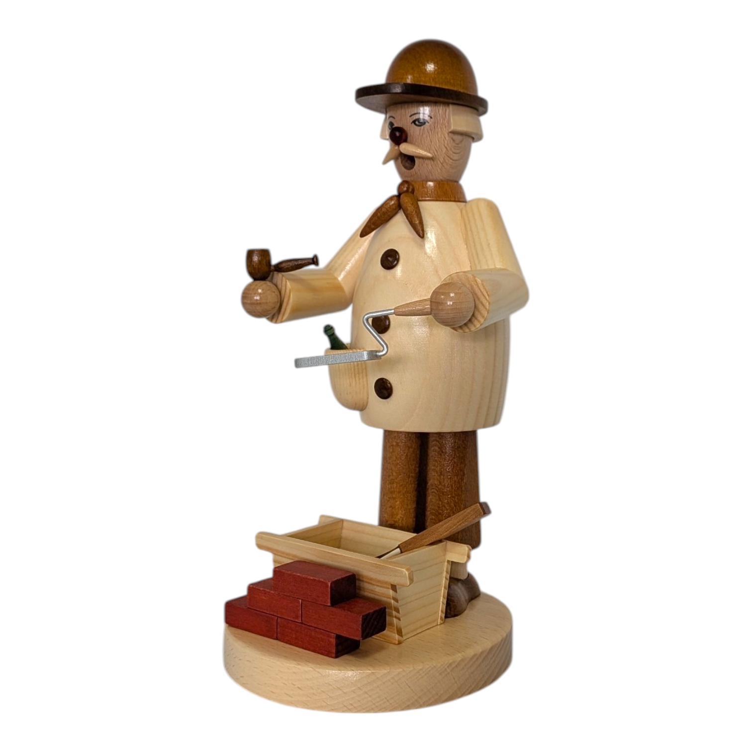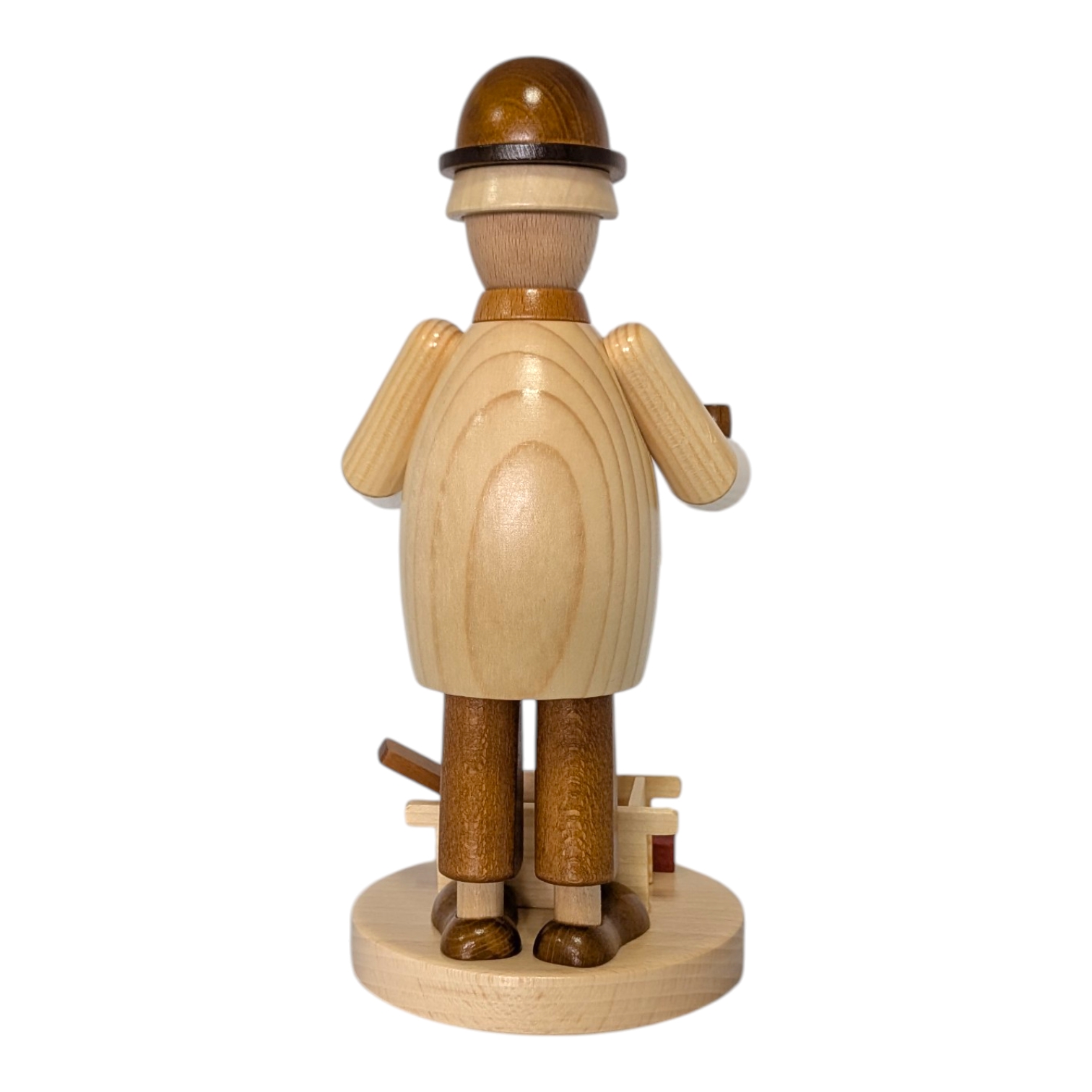 This bricklayer incense smoker, in natural wood, is lovingly handcrafted using traditional techniques by the Friedbert Uhlig woodturning workshop. Natural wood incense figures and miniatures with unusual motifs are the hallmark of the Uhlig company, based in Leubsdorf.