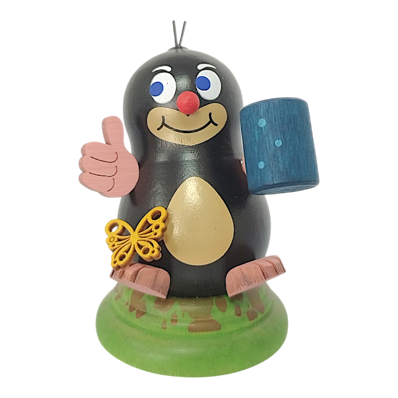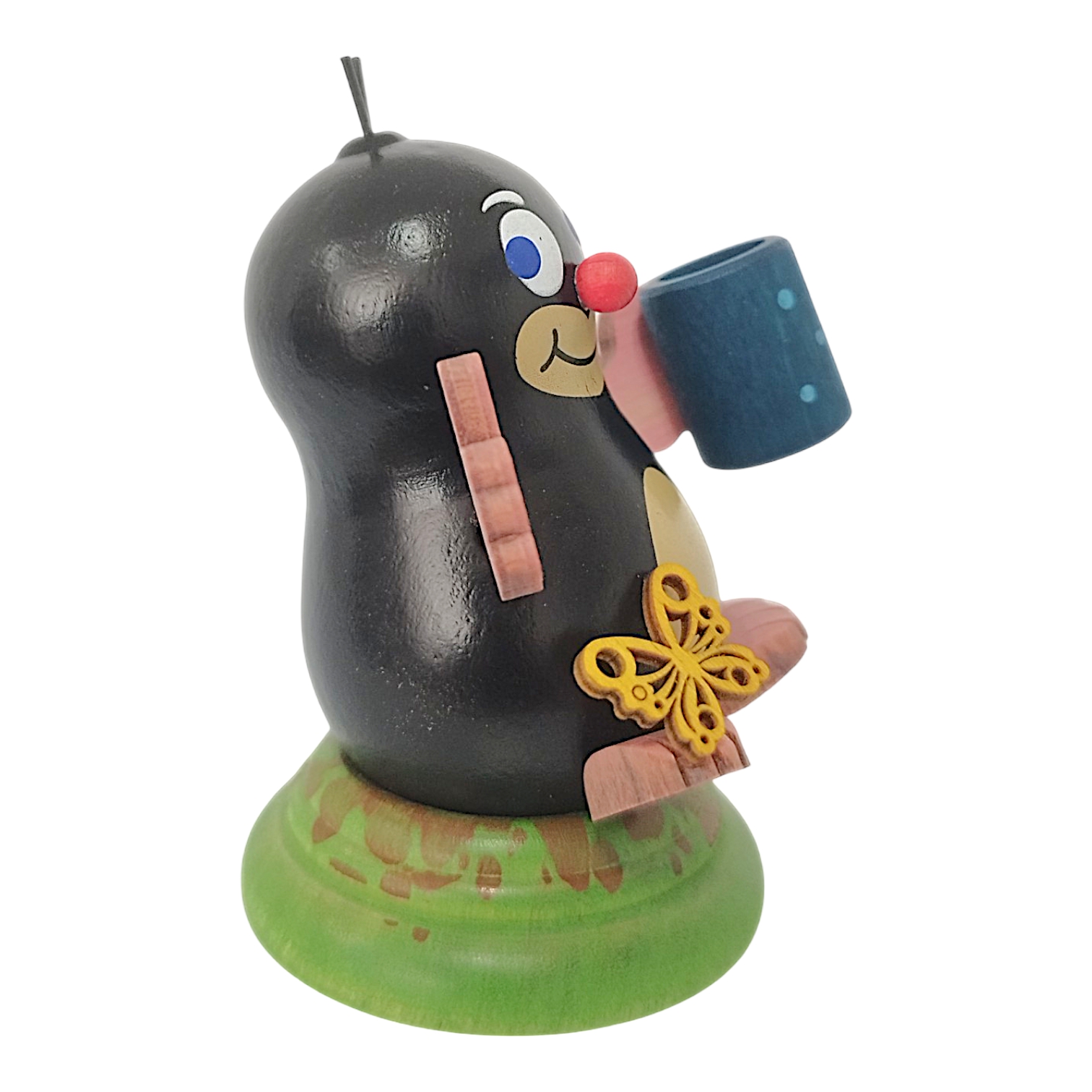 Discover the enchanting Anna the Mole, another masterpiece of Erzgebirge folk art from the Kuhnert workshop. Lovingly crafted with meticulous attention to detail and carefully handcrafted by the Kuhnert woodturning studio, this small wooden figure captivates with its characteristically plump silhouette. These rounded shapes lend Anna an instantly warm and inviting charm. While her deep black body gleams with an elegant sheen, her light-colored belly provides a soft, natural contrast. Her friendly face brings the little digger to life. Furthermore, her blue eyes and distinctive red nose make her a truly unique collector’s item.