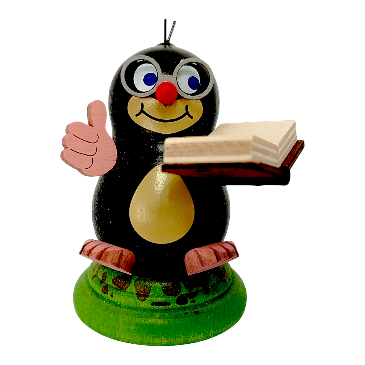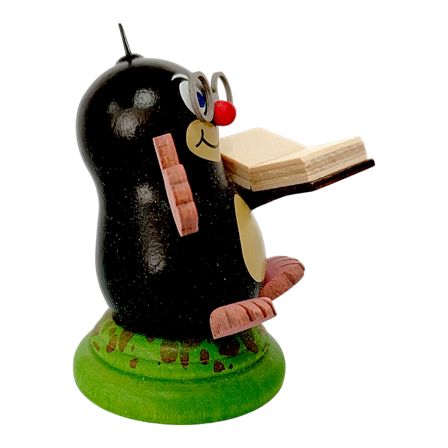 Franzi the Mole embodies traditional Erzgebirge craftsmanship, as each piece is meticulously handcrafted with great attention to detail. The small figurine captivates with its plump silhouette, the rounded shapes lending it a particularly endearing charm. While the deep black body gleams, the light-colored belly provides a gentle contrast to the dark form. At the same time, the friendly snout brings the character to life, as the inquisitive blue eyes and mischievous smile immediately engage the viewer. Furthermore, the red nose and two jaunty hairs serve as distinctive features that make the entire series unique.