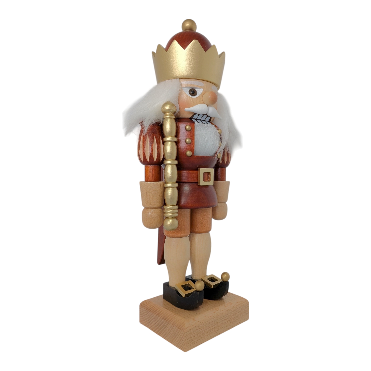 Majestic, elegant, and timelessly beautiful: This natural and gold Nutcracker King is a real eye-catcher – from the golden crown to the finely decorated shoes. He embodies royal dignity in its finest form and takes Erzgebirge craftsmanship to a new level.