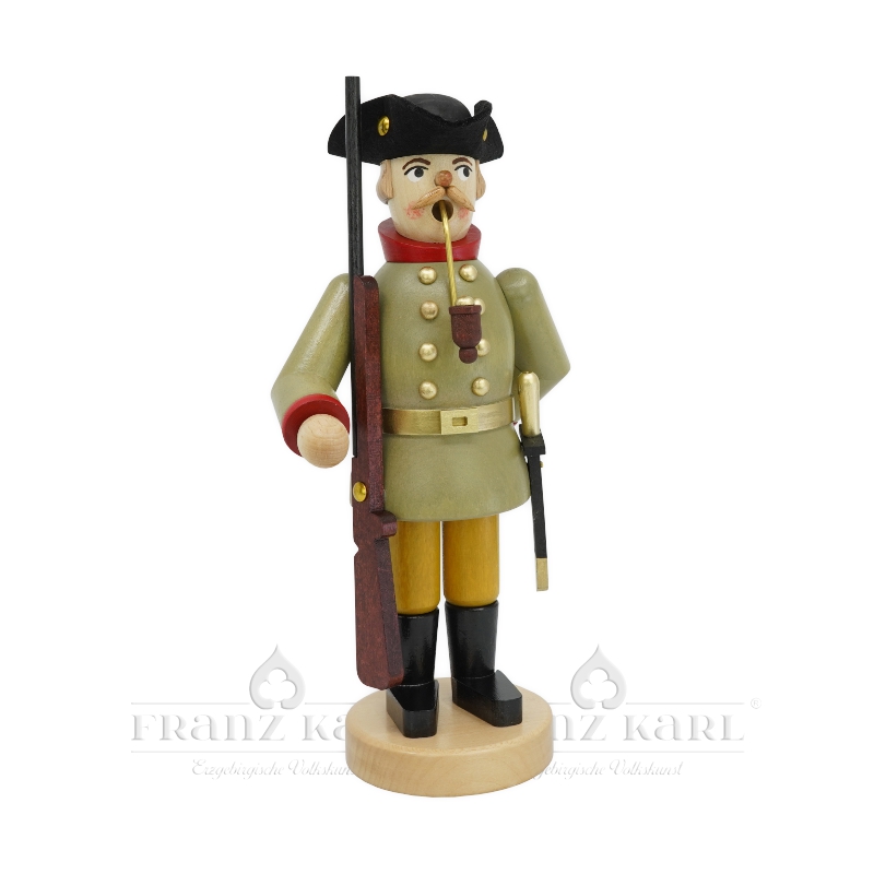The Prussian Jäger incense smoker is a characterful figurine from the workshop of Franz Karl. This figure is lovingly handcrafted using traditional techniques and then meticulously hand-painted to capture the pride and tradition of historical uniforms.
