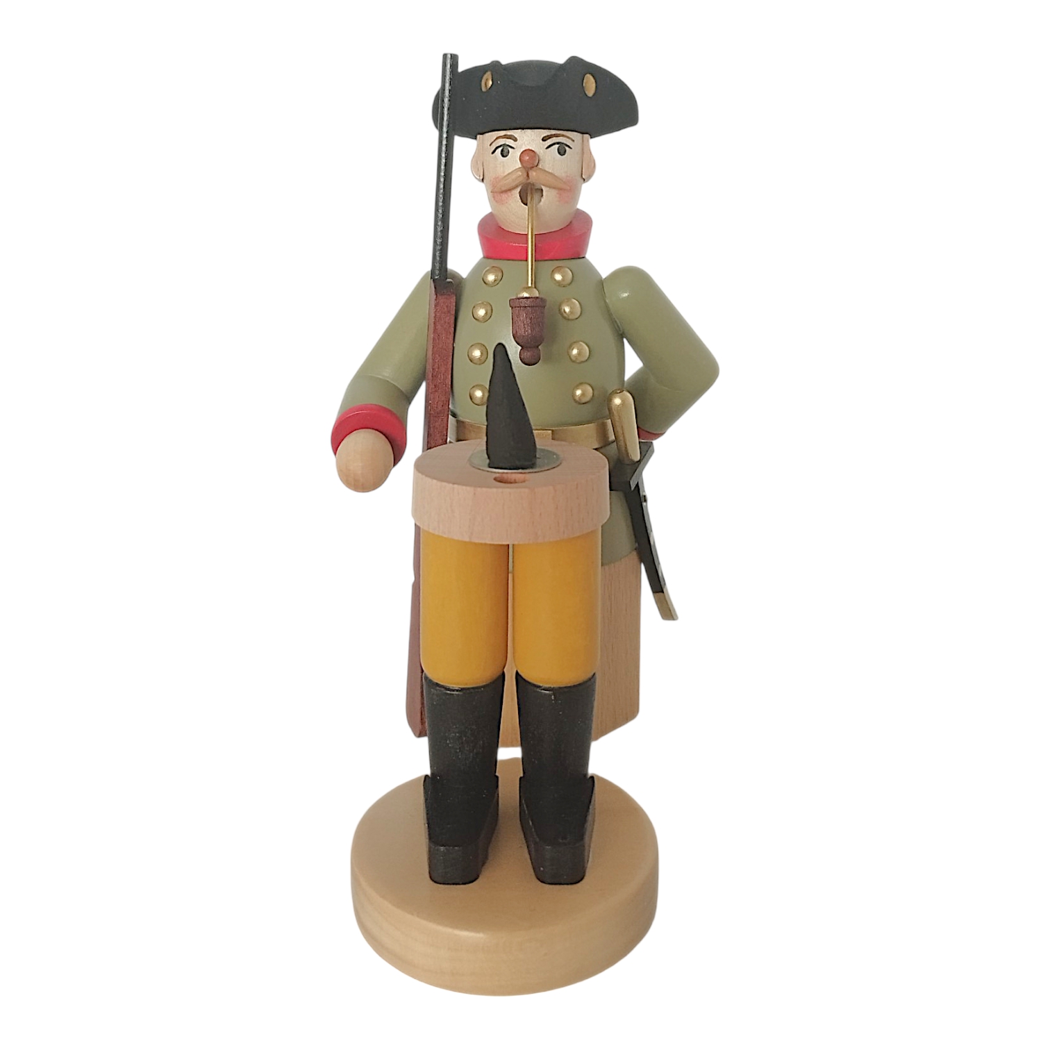 This Prussian Hunter incense smoker is undoubtedly an eye-catcher and a tribute to the Erzgebirge region’s woodcraft tradition. It will accompany you throughout the year with your favorite fragrance, creating a nostalgic atmosphere in your home. Its handcrafted quality and attention to detail, from the yellow trousers to the gleaming black boots, make it a wonderful addition to any collection of incense smokers.