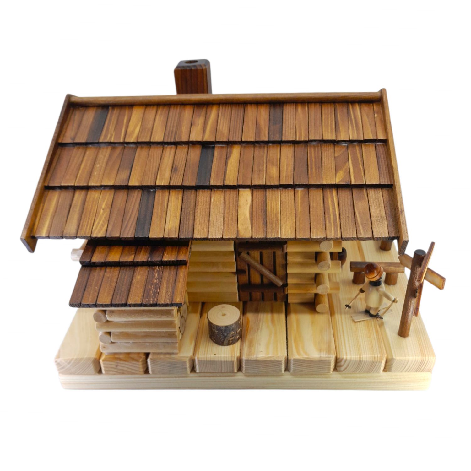 This smoker house can be equipped with standard incense cones, simply detach the house from the base plate, light your favorite incense candle and the house smokes traditionally from the chimney.