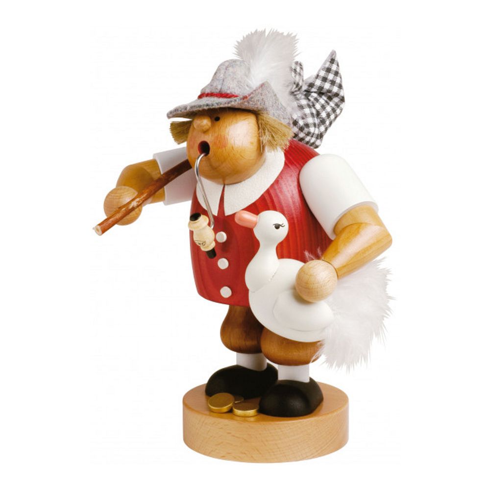 Hans in Luck is a character from the fairy tales of the Brothers Grimm. Our smoker figurine portrays Hans in Luck with a goose and a walking stick on his back. If you’re not familiar with the tale, you can read about Hans in Luck to learn more.