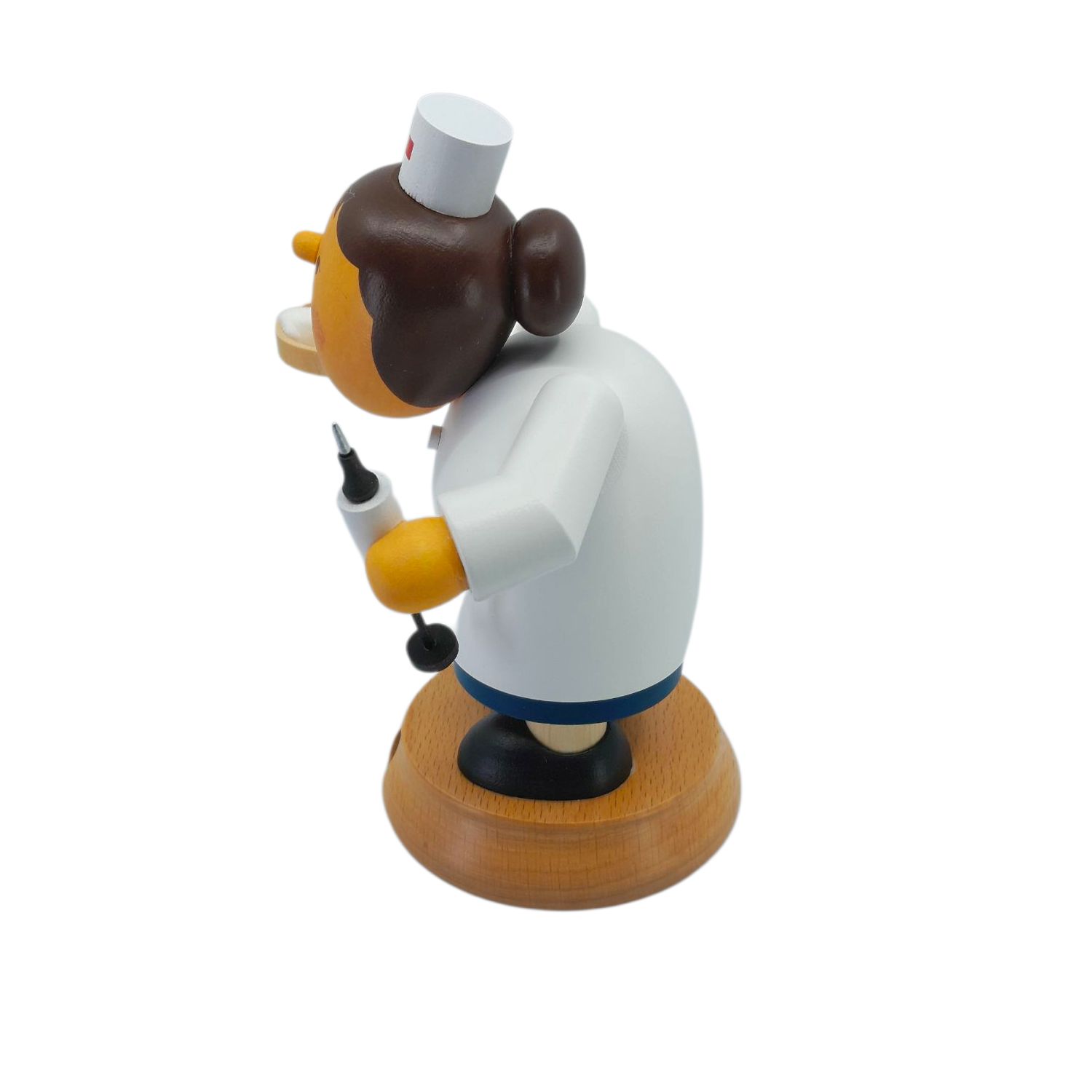 In traditional nurse costume with cap on her dark hair, the nurse comes with the medicine on the tablet roped. In her left hand, the syringe – What must be, must be!