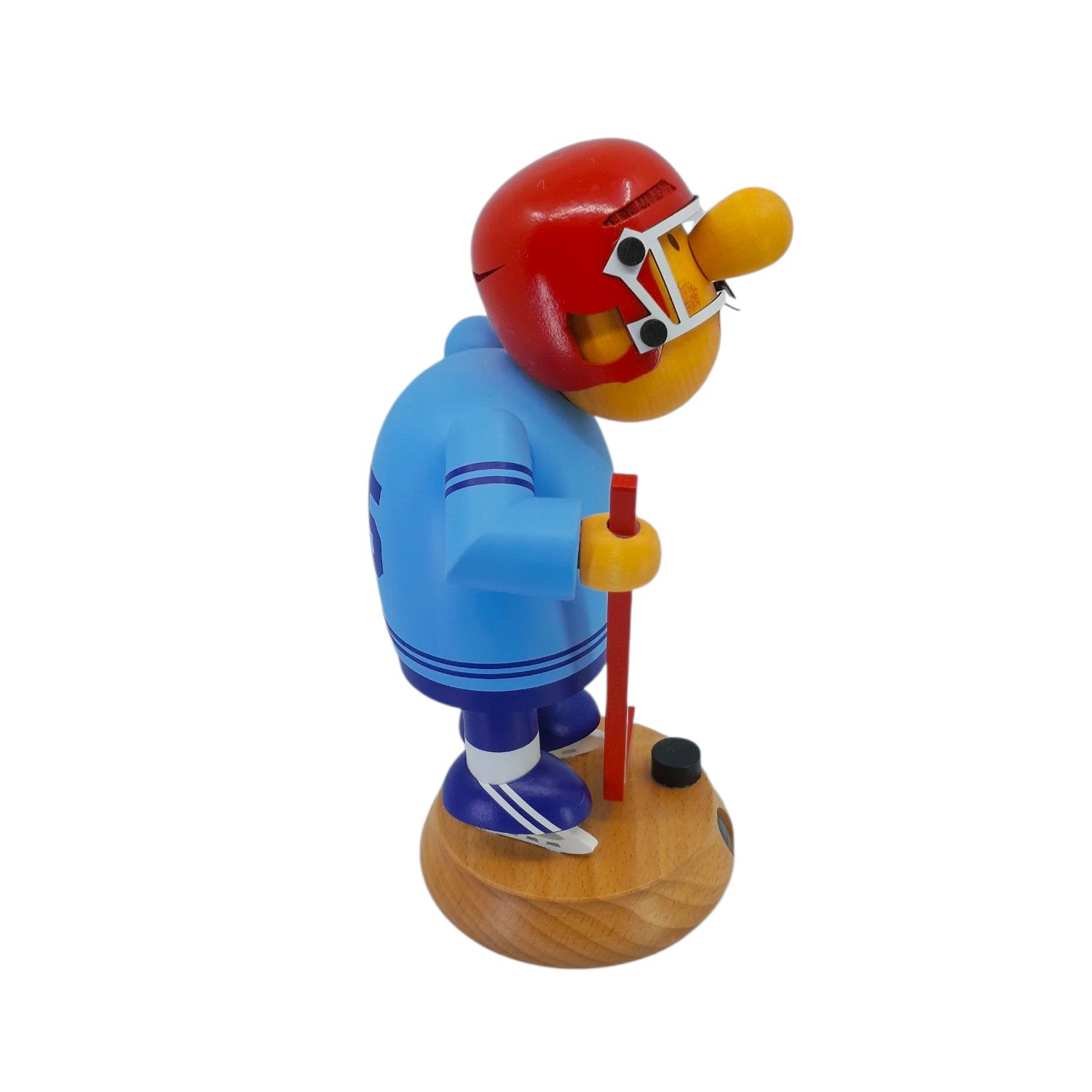 The Müller Ice Hockey Player smoker is both decorative and functional. An incense cone can be placed inside. The smoke then escapes from his mouth, creating the impression that the player is exhaling forcefully after a strenuous game.