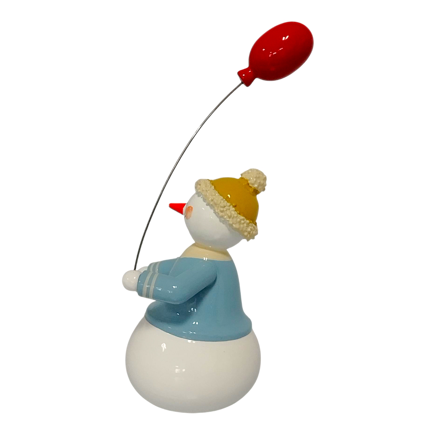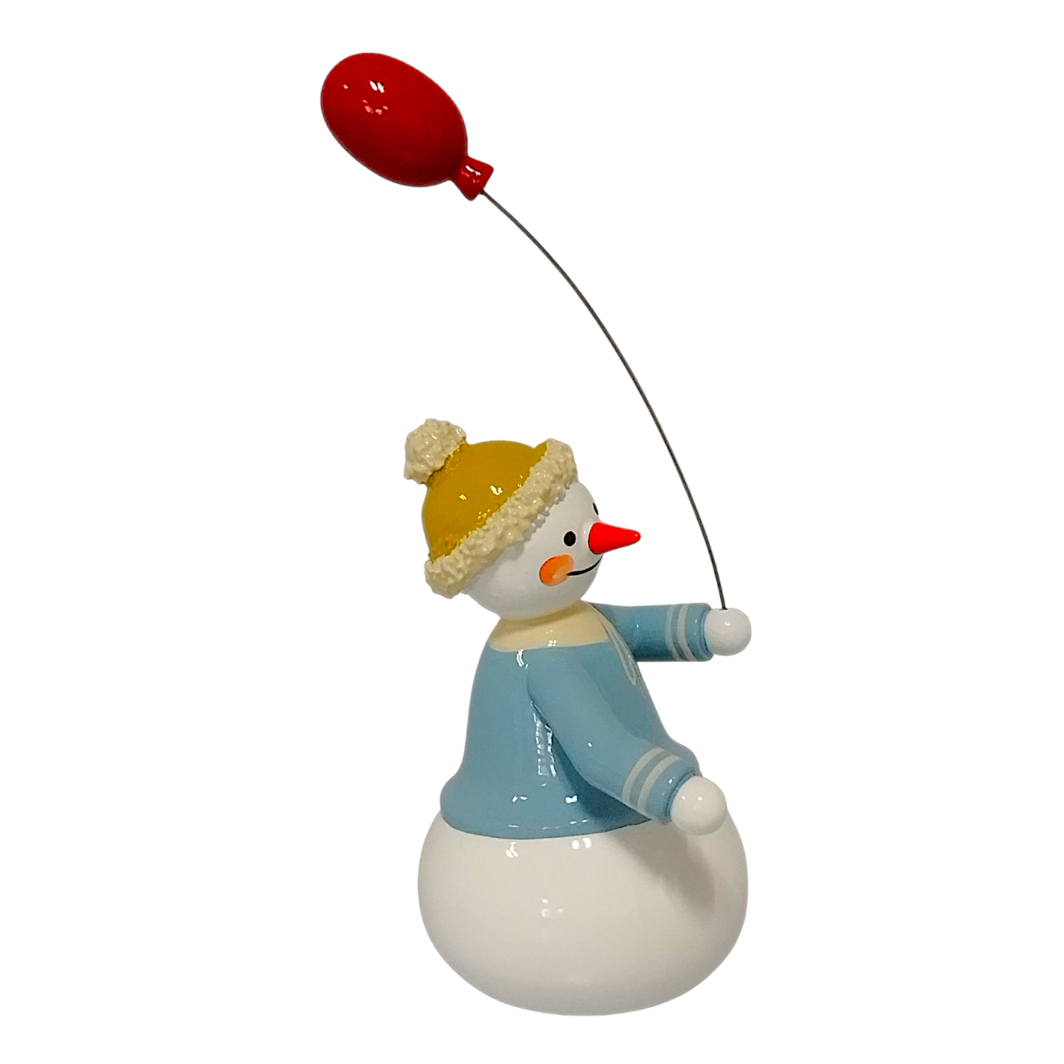 The bright red balloon is attached to a fine metal wire, floating elegantly above the figure and perfectly complementing the overall design. Thanks to its compact and stable shape, the snowman stands securely on a windowsill, sideboard, or festively set table. This figure is ideal as a gift for lovers of Erzgebirge woodcraft and as a winter decoration for your home. The snowman with the red balloon evokes childhood memories and brings joy to winter days. His cheerful expression brightens any room and adds the special flair of handcrafted, unique pieces to your Christmas decorations.