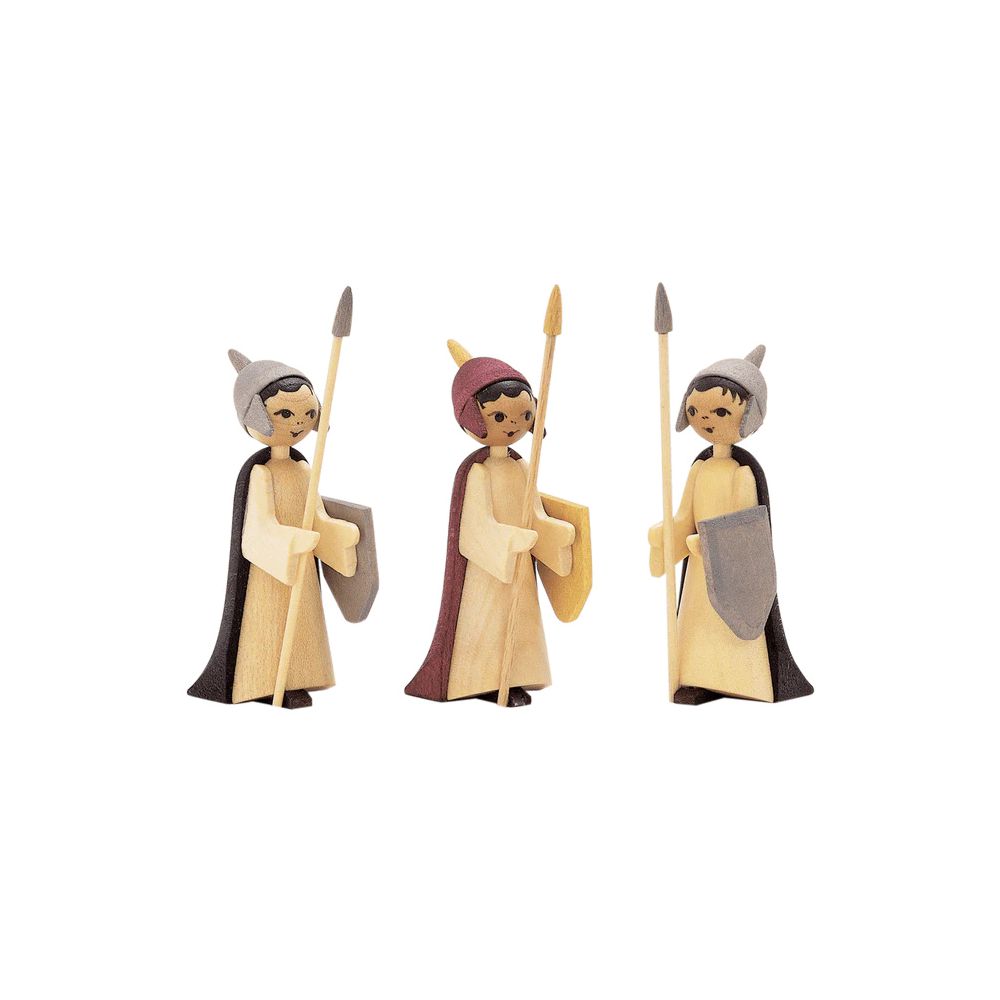 These 3-part soldiers, stained, belong to the series of crib figures and come from Ulmik based in Seiffen.