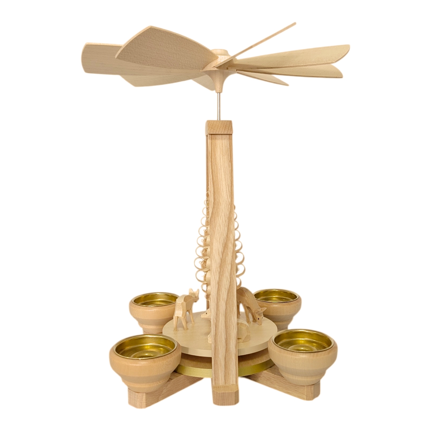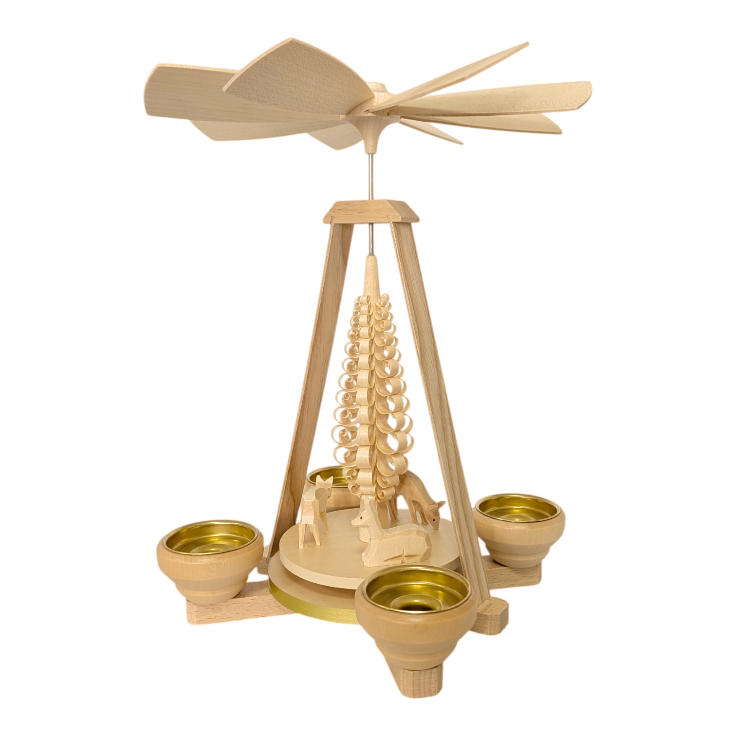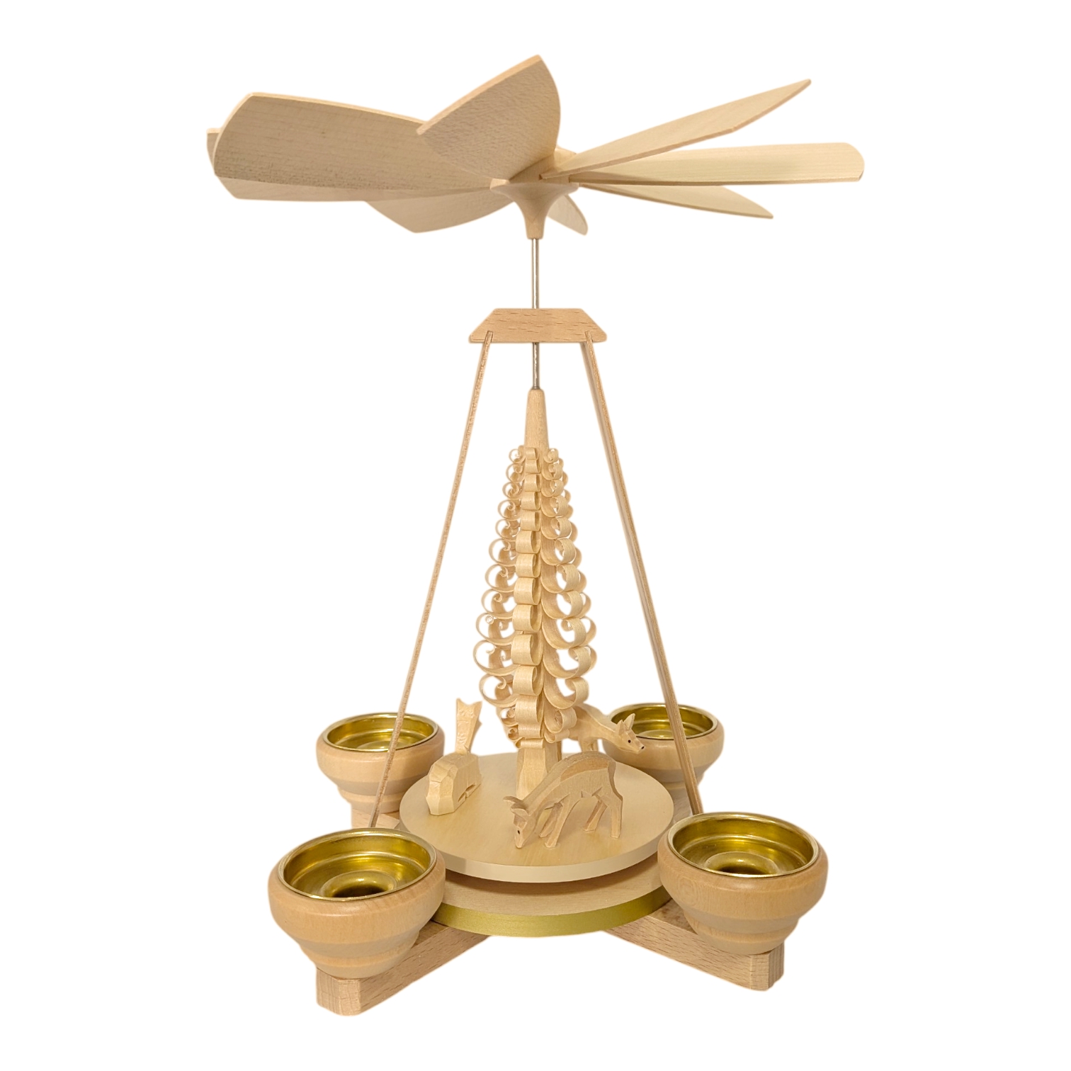 The tradition of Christmas pyramids comes from the Ore Mountains in Germany. It developed in the 18th century. Originally, Christmas pyramids were made from wood. These artistic structures rotate due to the rising heat of candles. The focus is usually on biblical scenes or winter motifs. The pyramids symbolize the light and hope of the Christmas season. In the past, they served as the forerunner of the Christmas tree. In the Ore Mountains, Christmas pyramids are an integral part of the festive decorations. They are often passed down from generation to generation. Each pyramid is an expression of traditional craftsmanship.